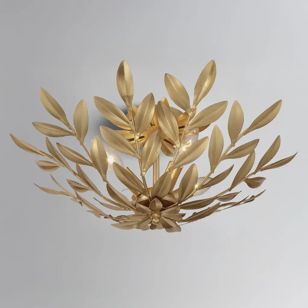 Individual wrought iron leaves deliver a stunning, unique, and functional light. The tailored elegance of the shimmering metallic florals is perfect for a transitional home though versatile enough to be incorporated into any modern design. While ideal for a bedroom, living area, or kitchen, it can be used anywhere you want to add a bit of glam.