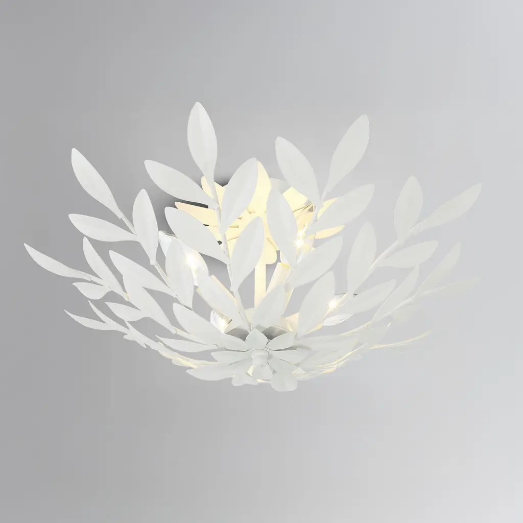 Individual wrought iron leaves deliver a stunning, unique, and functional light. The tailored elegance of the shimmering metallic florals is perfect for a transitional home though versatile enough to be incorporated into any modern design. While ideal for a bedroom, living area, or kitchen, it can be used anywhere you want to add a bit of glam.