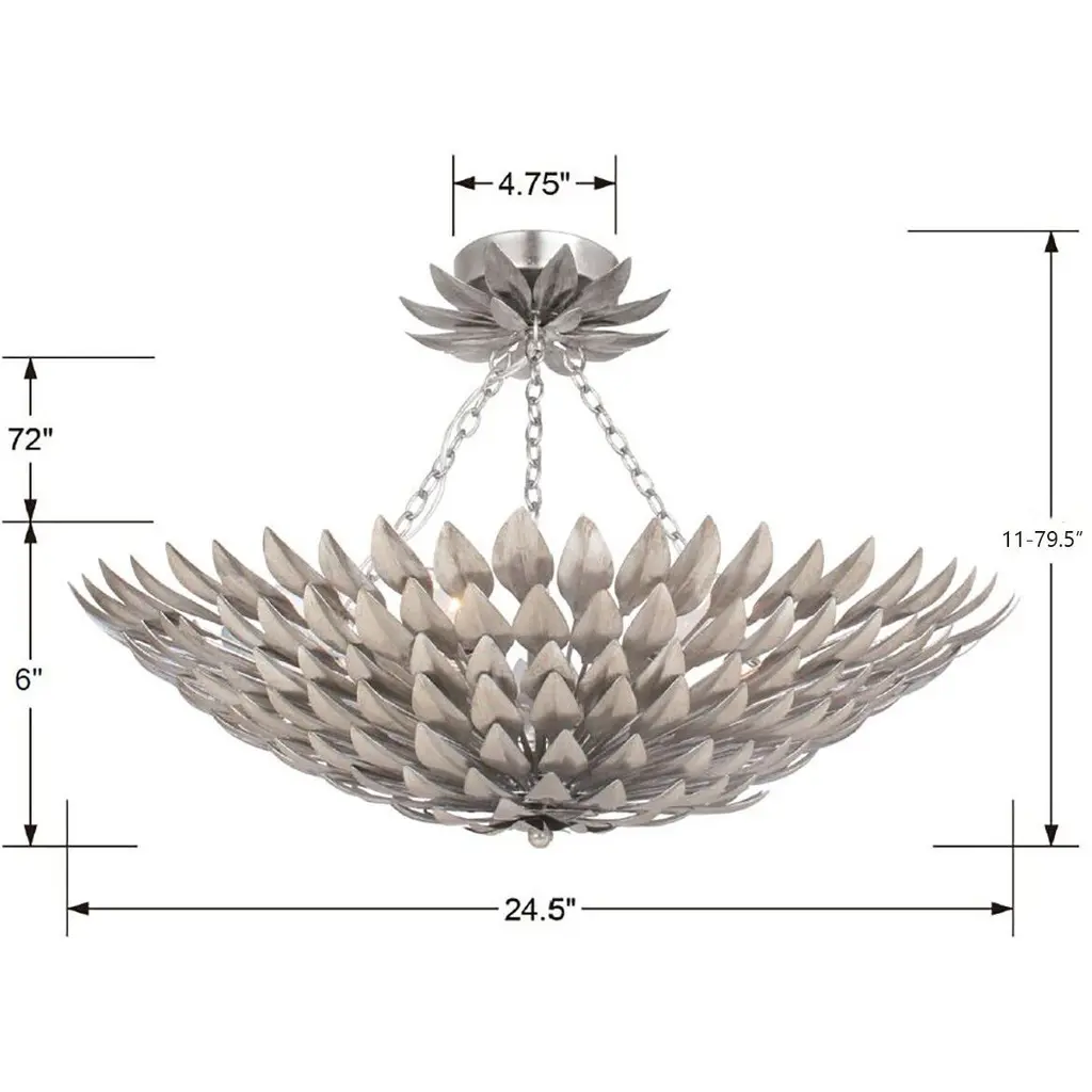Broche 6 Light 24.5 Inch Antique Silver Semi Flush Ceiling Light