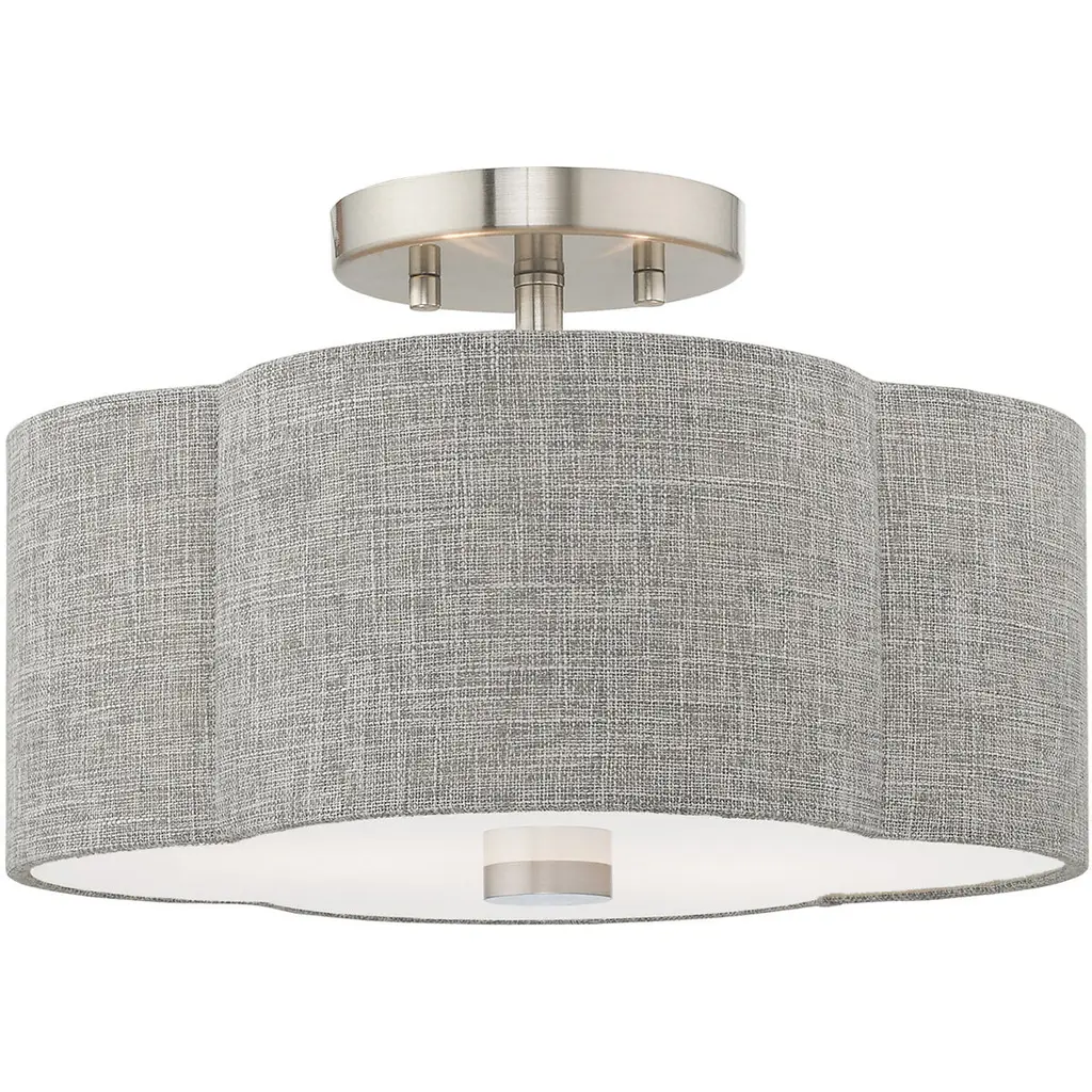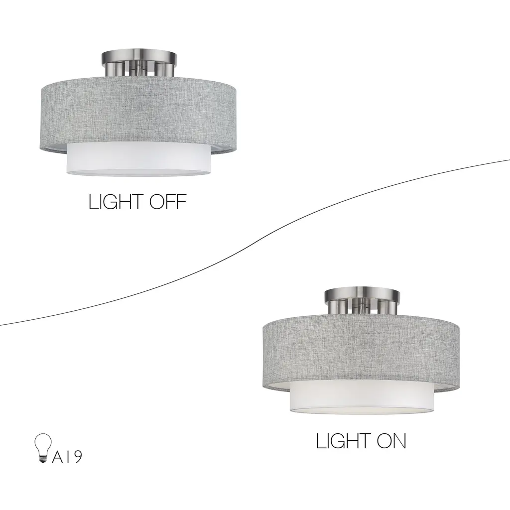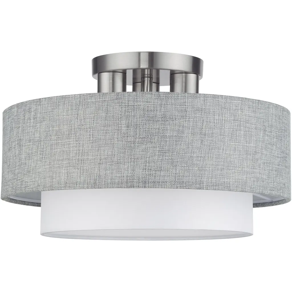 Brookmeade 3 Light 15 Inch Brushed Nickel Semi-Flush Ceiling Light