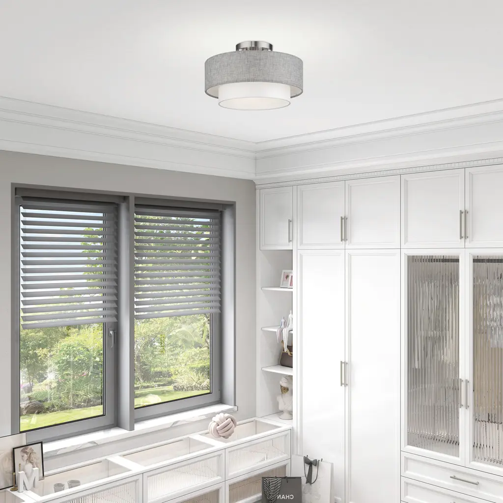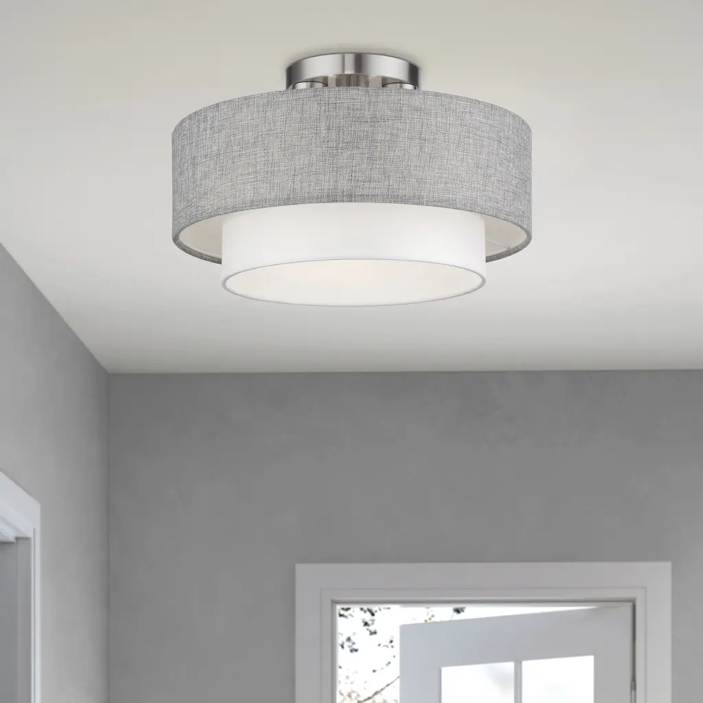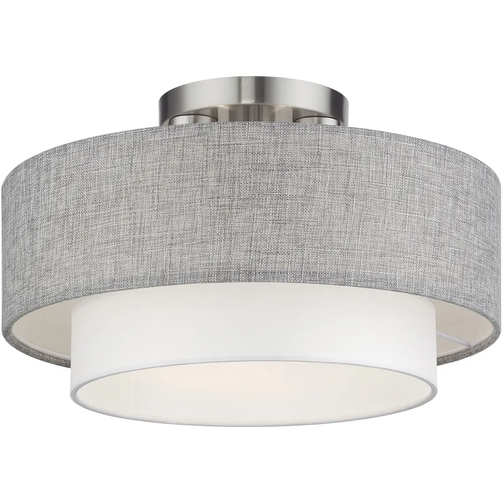 Brookmeade 3 Light 15 Inch Brushed Nickel Semi-Flush Ceiling Light