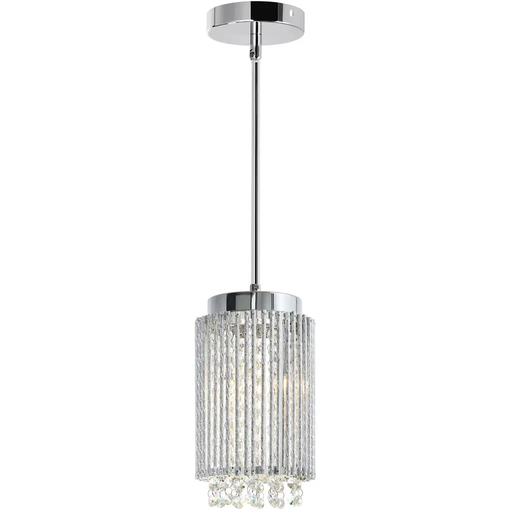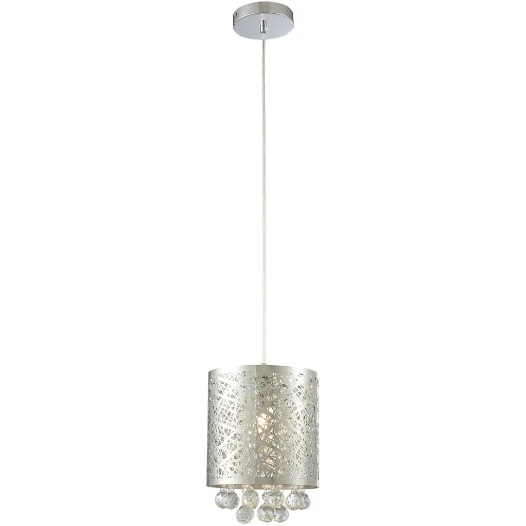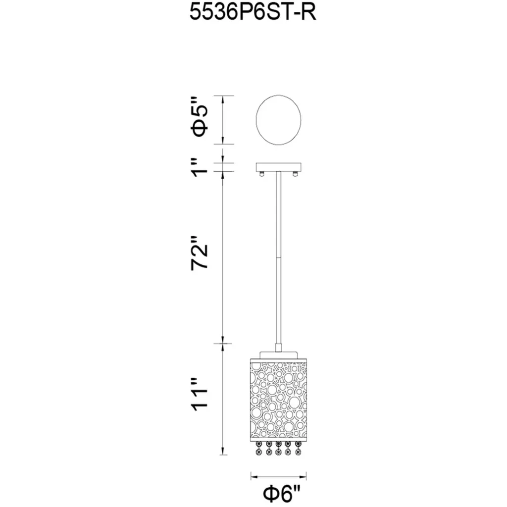 The Bubbles 1 Light Pendant glitters beautifully when light is turned on and when turned off. This drum shade mini pendant showcases an effervescent appeal with its laser-cut cylindrical shade with strands of round crystals hanging from the inside. Measuring 6 inches in diameter and 12 inches in height, this mini light fixture won't take a lot of space but will shower your interiors with sparkling elegance.