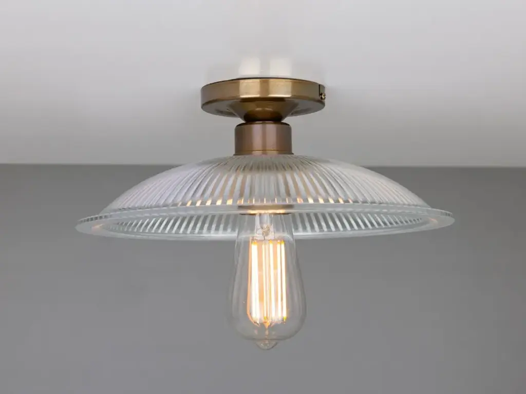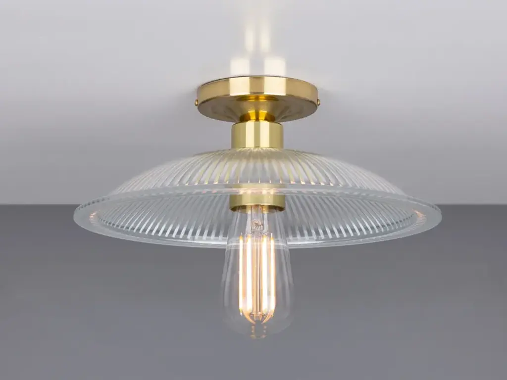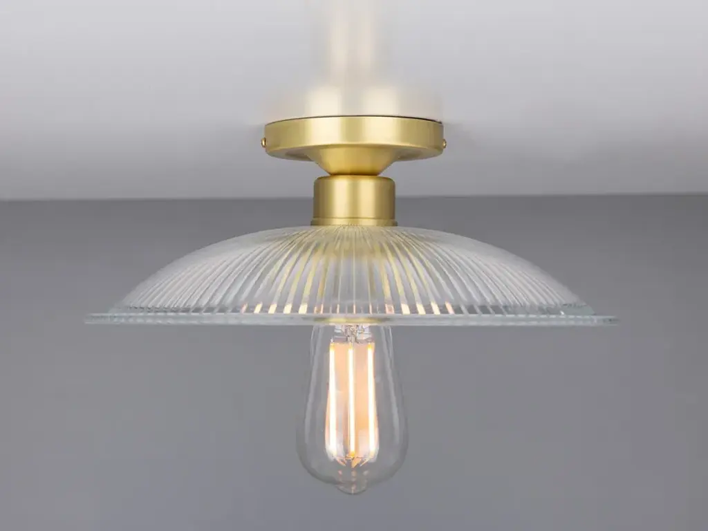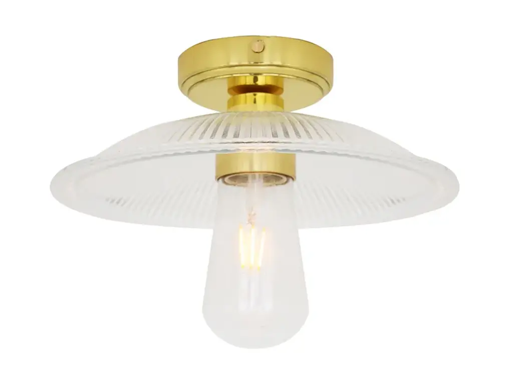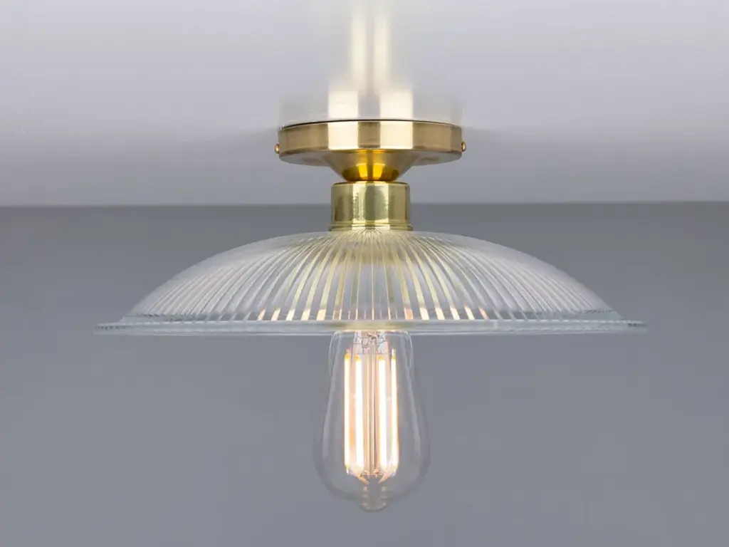 The Calix Holophane Fitting would look fantastic in a wide range of settings.Material: Brass | GlassMax Wattage: 40wVoltage: 220v/240vLampholder: E27 | Metal | ES | Edison ScrewIP Rating: IP20Ceiling Attachment: MLROSE05 | 10cm DiameterGlass Code: GL133