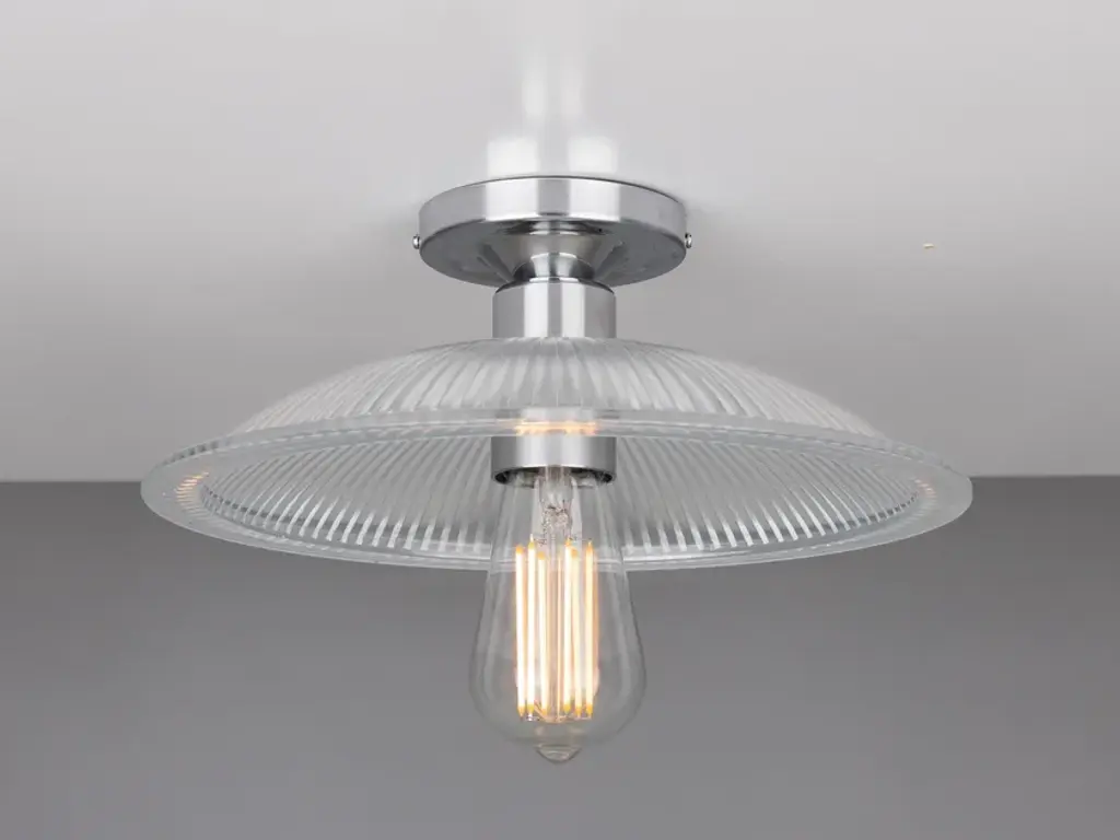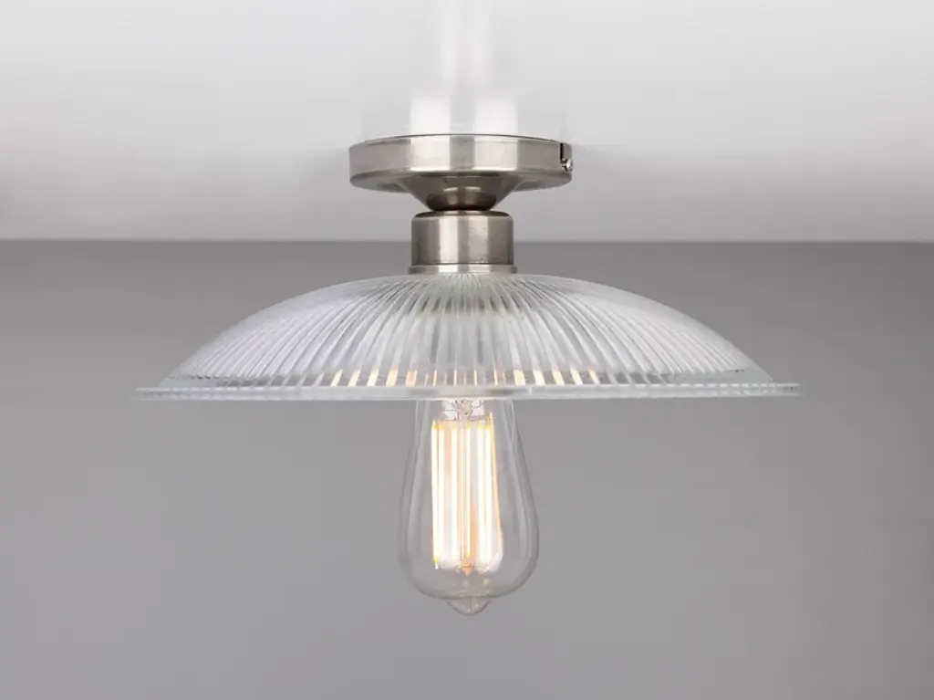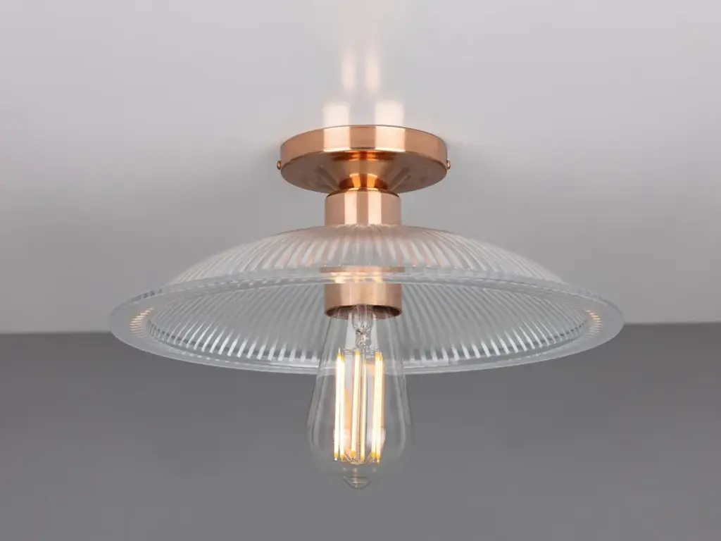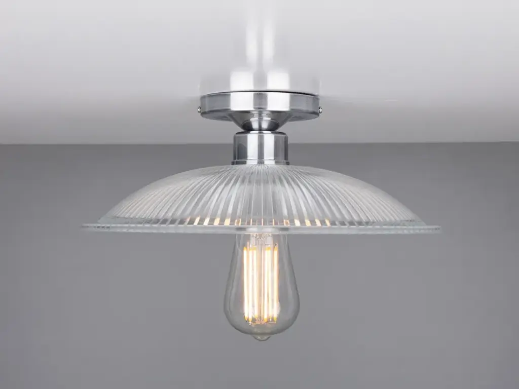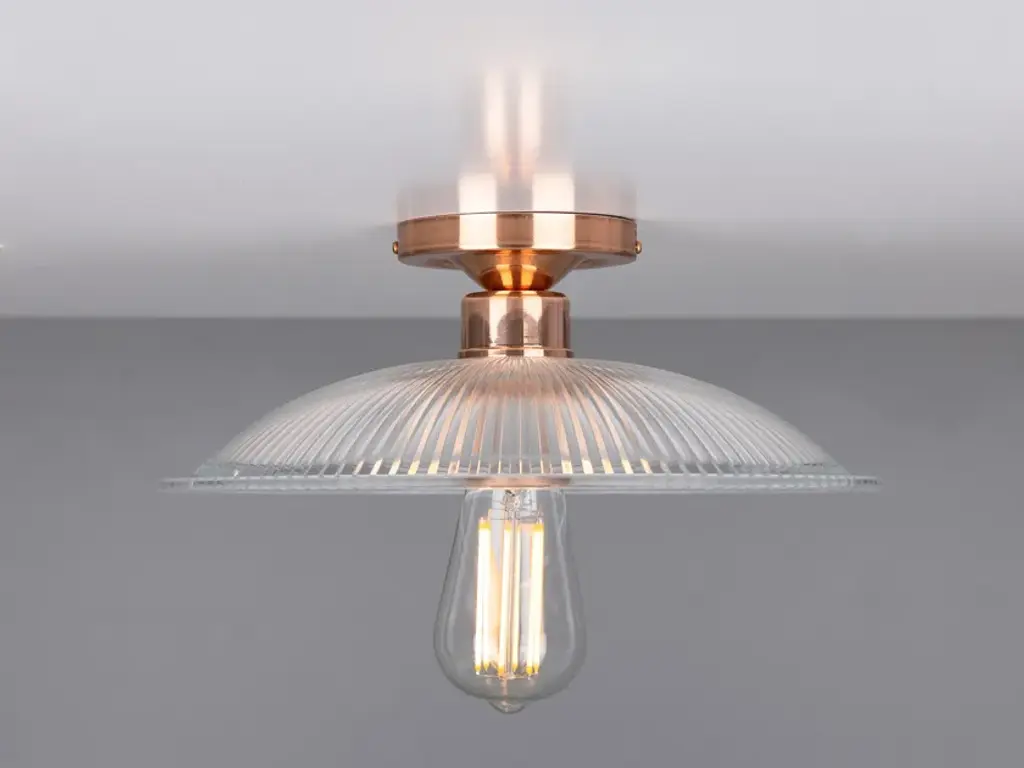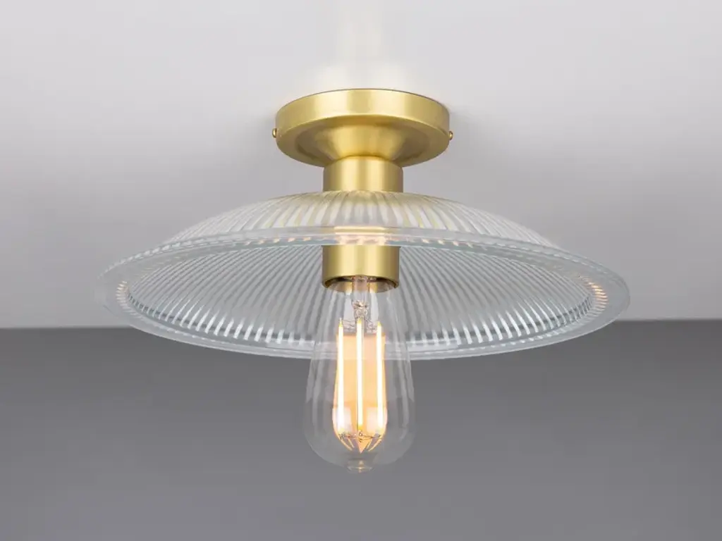 The Calix Holophane Fitting would look fantastic in a wide range of settings.Material: Brass | GlassMax Wattage: 40wVoltage: 220v/240vLampholder: E27 | Metal | ES | Edison ScrewIP Rating: IP20Ceiling Attachment: MLROSE05 | 10cm DiameterGlass Code: GL133