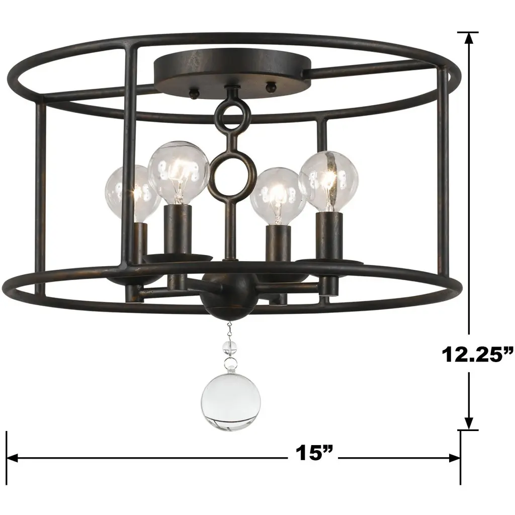 Cameron 4 Light 15 Inch English Bronze Semi Flush Ceiling Light