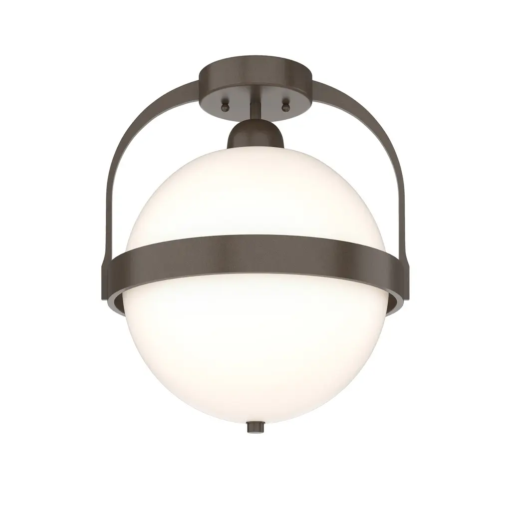 Designed by Brian Patrick Flynn, this ceiling fixture is suitable for outdoor use, though it's equally at home in a foyer, a hall, or a bathroom. The combination of matte black base, brushed gold, and frosted white glass adds texture and verve to the minimalist silhouette.
