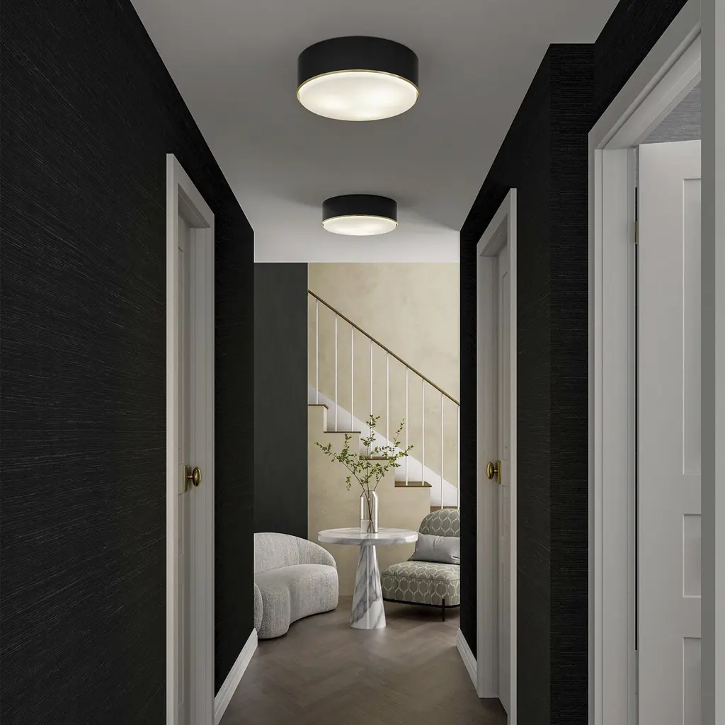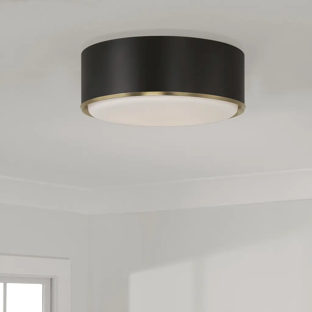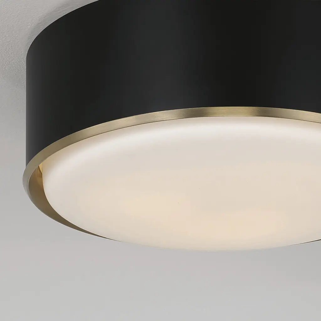 Sleek and sophisticated, the Carlton Semi Flush has a unique, almost-flush design. The Matte Black metal band rests on top of a Matte Brass ring for a hint of shine, and the Soft White glass creates a soft glow for this updated Flush Mount look.