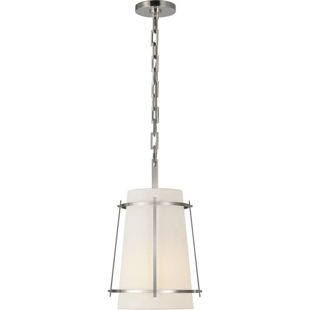 Callaway Medium Hanging Shade in Polished Nickel with Linen Shade and Frosted Acrylic Diffuser