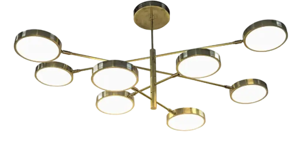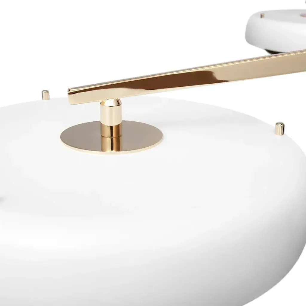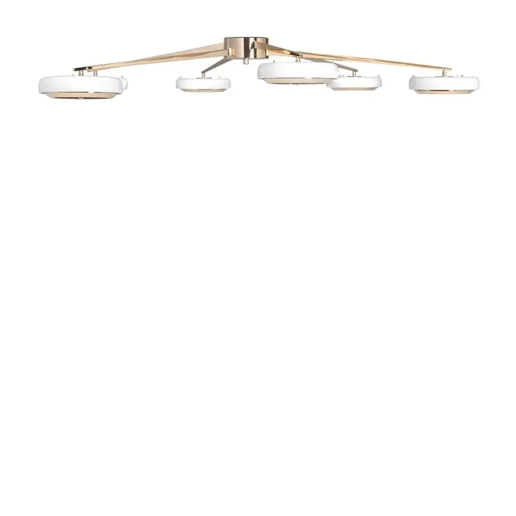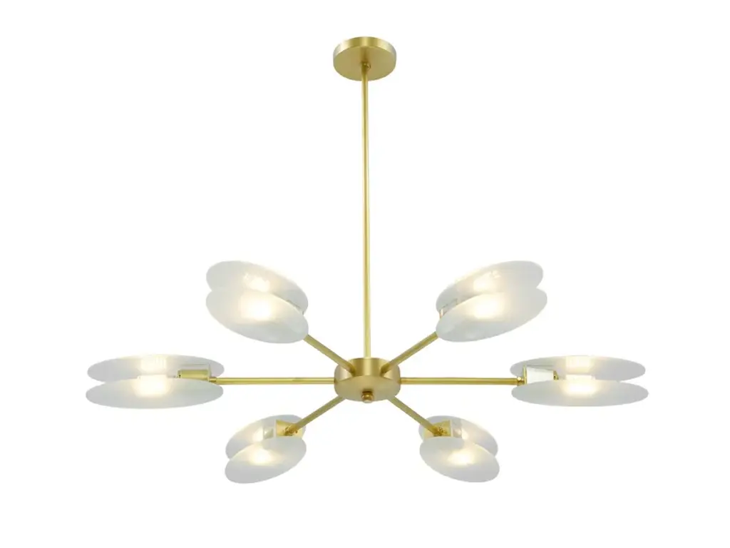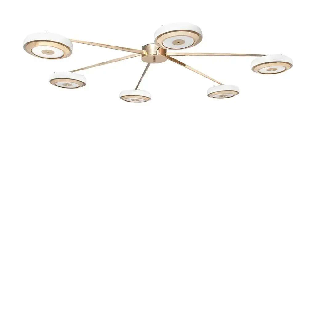 Designed with the great discoveries of space in mind, Carter modern suspension lamp has all the unique fixture elements to be a memorable modern lighting design. Its unique shape is recognizable anywhere and its attention to detail is a one of a kind making this the perfect bespoke design. Handmade in polished brass and matte white, the soft casting light of the 6 arms of this mid-century modern lighting. Up to 250V (Europe/UK Standard).