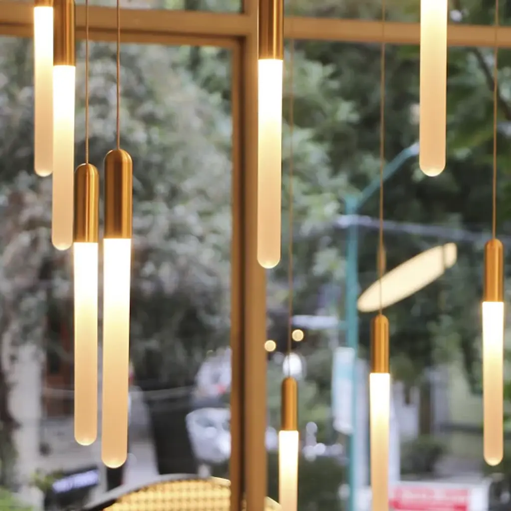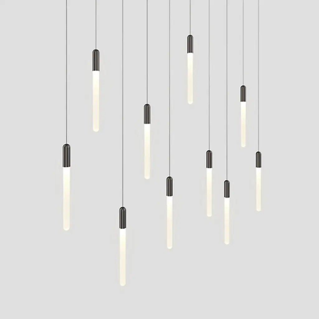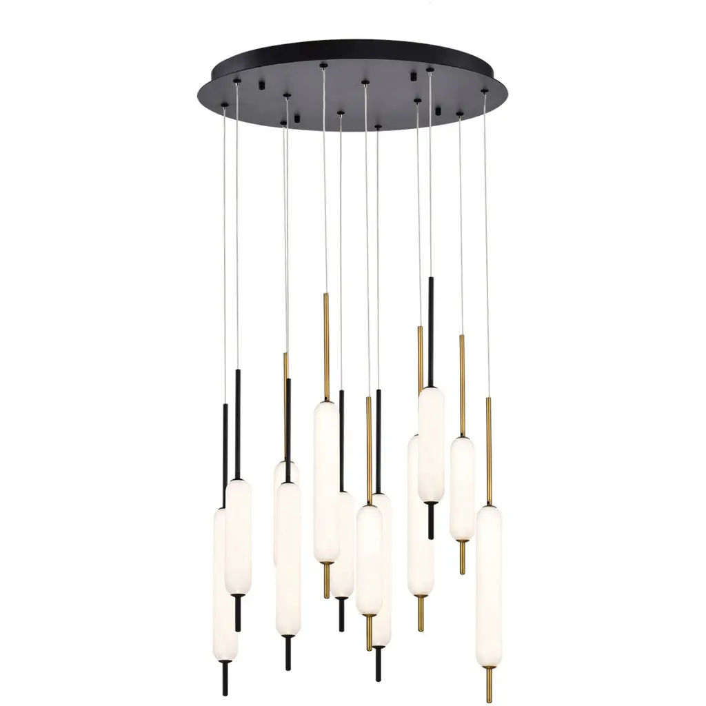 The Cascadia Linear Suspension from Matthew McCormick Studio inspires wonder like the snow-topped Canadian Cascades' mountain range with smooth passes of crisp illumination. While Matthew McCormick's work finds the magic of transforming form through light, he uses this piece as an homage to nature and its effortless beauty. It starts with a geometric canopy for a pure look. Slender wire suspends the slim elements below with a floating quality. Brass fitting pop in contrast against the handcrafted glass diffusers. Like a shining waterfall, light flows down with a smooth and energetic quality.