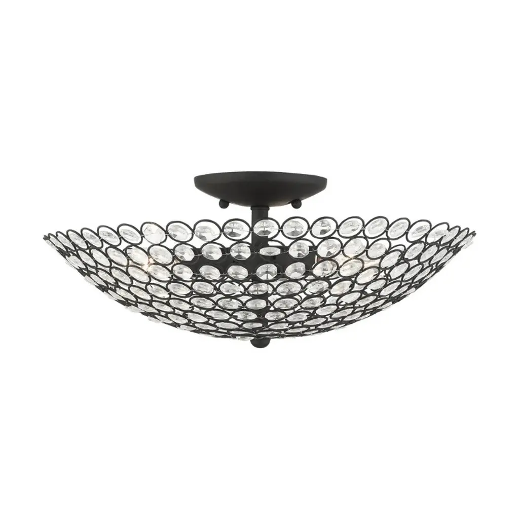 Cassandra 2 Light 13 Inch Black Semi Flush Ceiling Light