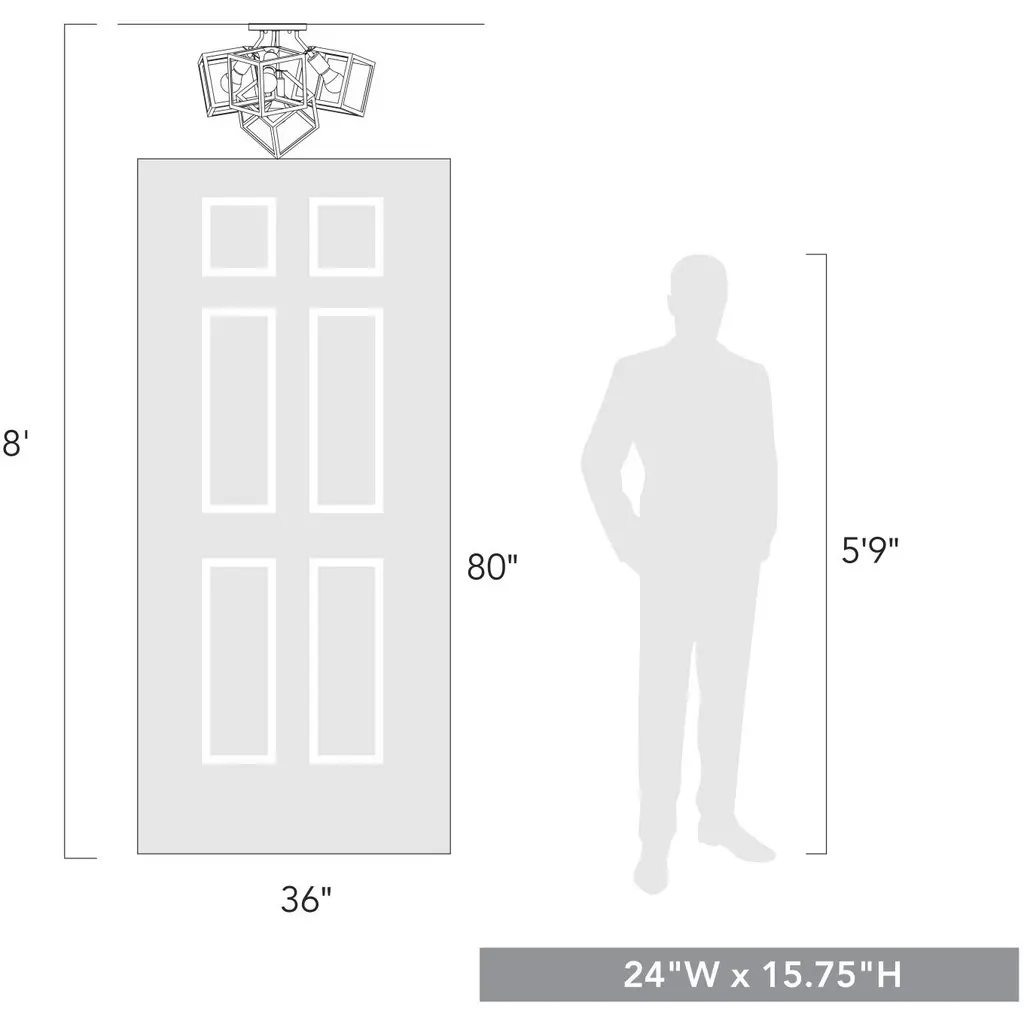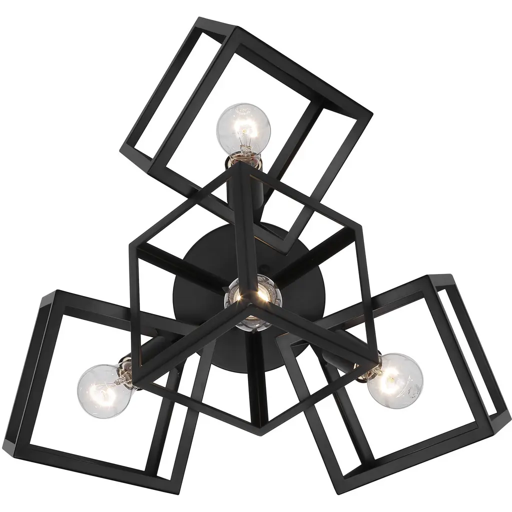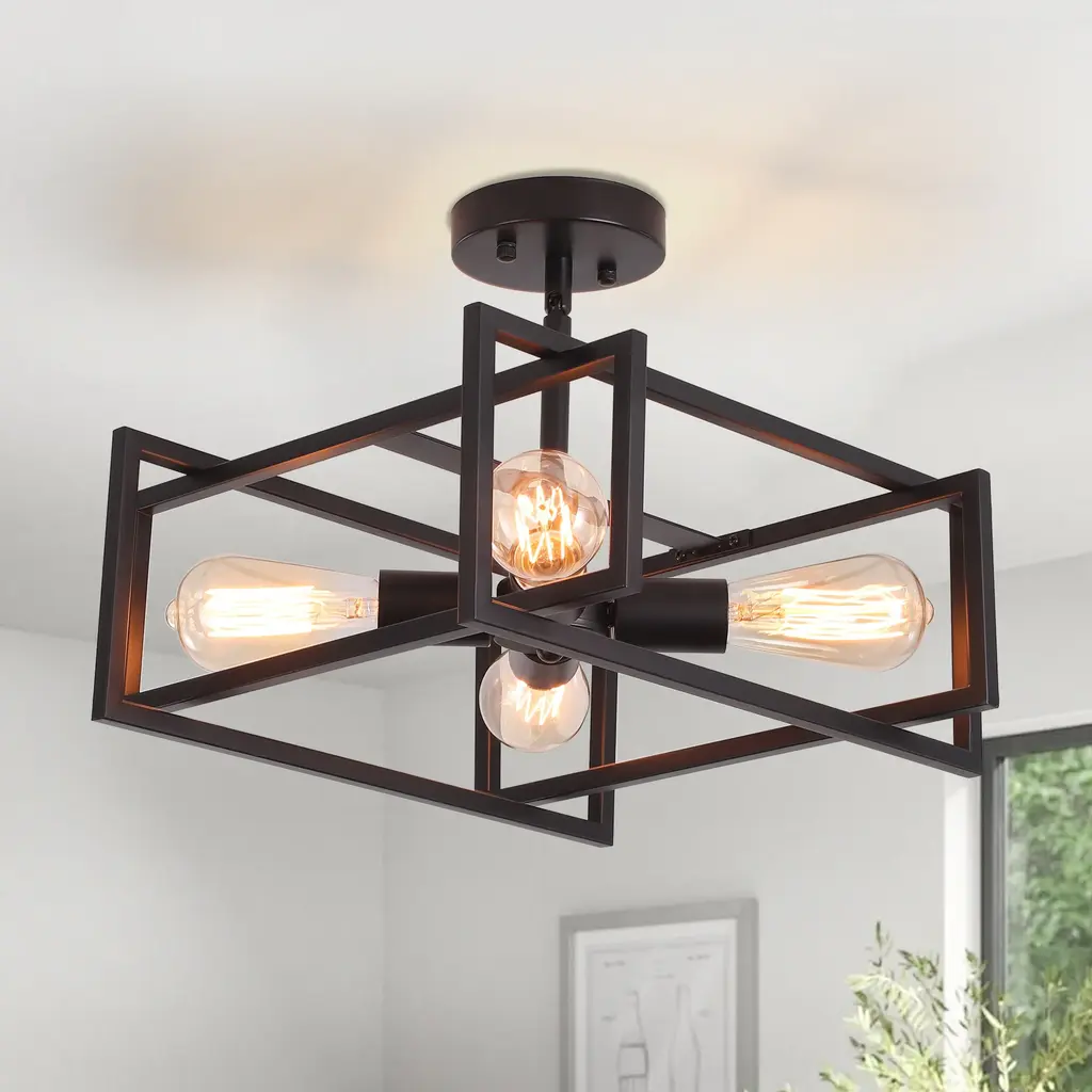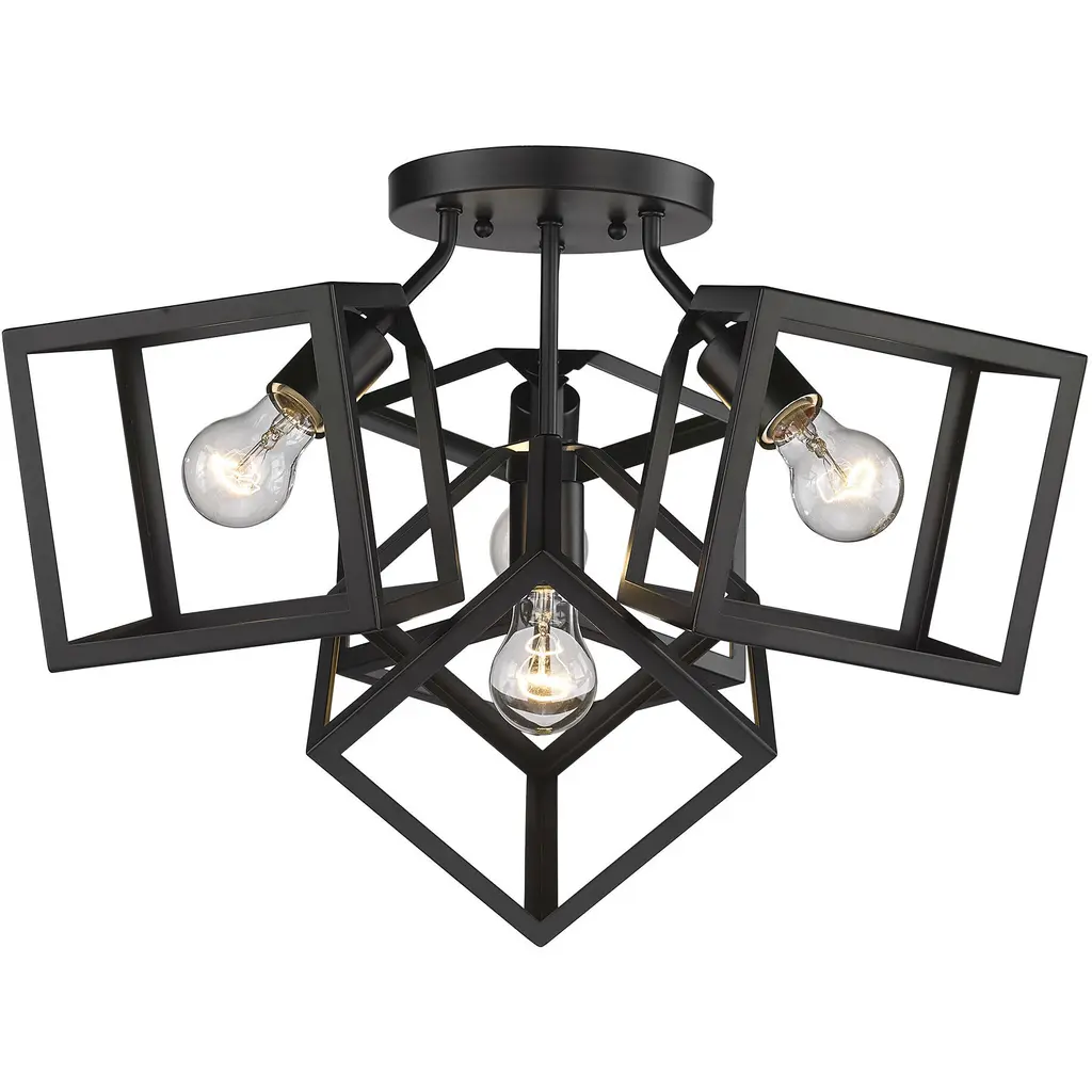 Bring industrial elegance into your home with the Golden Lighting Cassio 4-light Semi-Flush Mount in Matte Black. This semi-flush mount creates a welcoming atmosphere with its striking open-frame design and raw metal texture. In this fixture, the exposed bulbs are perfectly showcased, emphasizing its bold and authentic look. The matte black finish absorbs light, offering a smooth touch that complements various decor styles, creating an understated yet sophisticated ambiance.Ideal for a blend of style and practicality in entryways, bedrooms, kitchens, and living areas, this fixture is damp location rated, making it suitable for covered and semi-enclosed spaces such as bathrooms and laundry rooms.Overall Dimensions: 24"W x 15.75"H x 24"D, requires 4 E26 medium base bulbs (not included), with a maximum wattage of 100 per bulb. Experience quality craftsmanship and a bold design that will enhance your homes character.