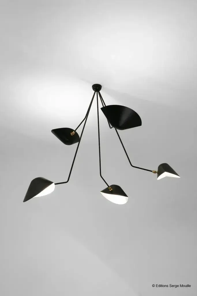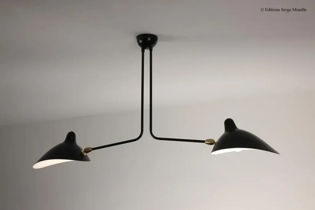 Ceiling lamp bookshelf curved by serge mouille dimensions: d38 x h100 cm. Materials: brass, steel, aluminum one of a king. Numbered. Also available in different color. All our lamps can be wired according to each country. If sold to the usa it will be wired for the usa for instance. Available in standard height or made-to-measure on request, the bibliothèque courbe serge mouille ceiling light is a 1958 reissue made in france by éditions serge mouille. It consists of a curved black steel rod and a mobile aluminum reflector with a glossy white interior fixed on a brass ball joint. up to 250v (europe/uk standard).