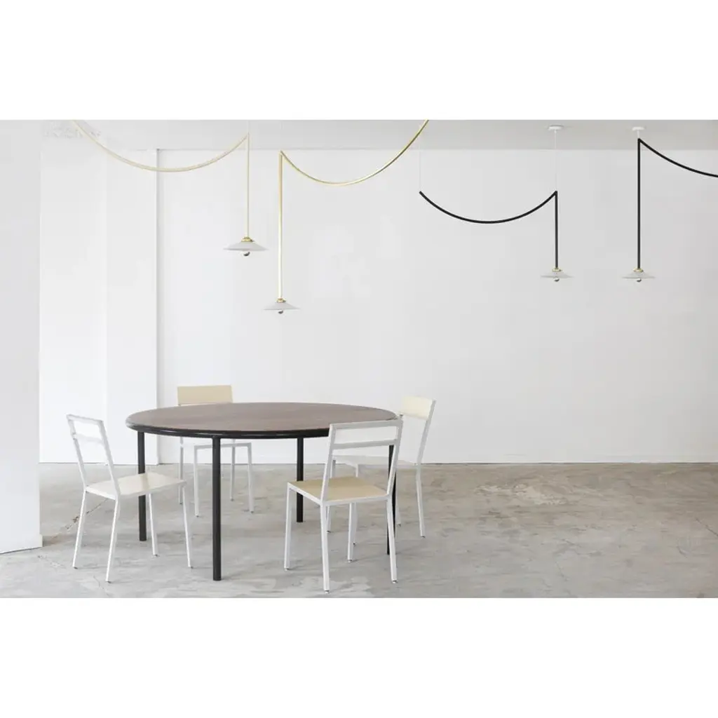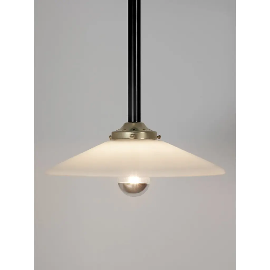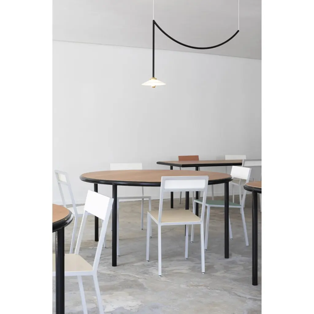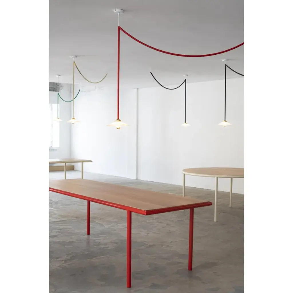 The Ceiling Lamp from valerie objects is an innovative luminaire with a simplistic yet defining design created by Muller Van Severen. Inspired by lighting Fien Muller and Hannes Van Severen designed for their home, the Ceiling Lamp consists of a simple metal tube and a very classic cone-shaped glass shade. The minimalist luminaire's gist lies in the extreme simplicity of the metal tube – as if someone had just drawn it in the air with a crayon. This adds a touch of playfulness to the almost industrial look of the luminaire, making it a fascinating, distinctive and unique addition to any space. Over the years, the Hanging Lamp has grown into a whole collection of distinctive luminaires, all characterized by the same recognizable, minimalistic expression.
