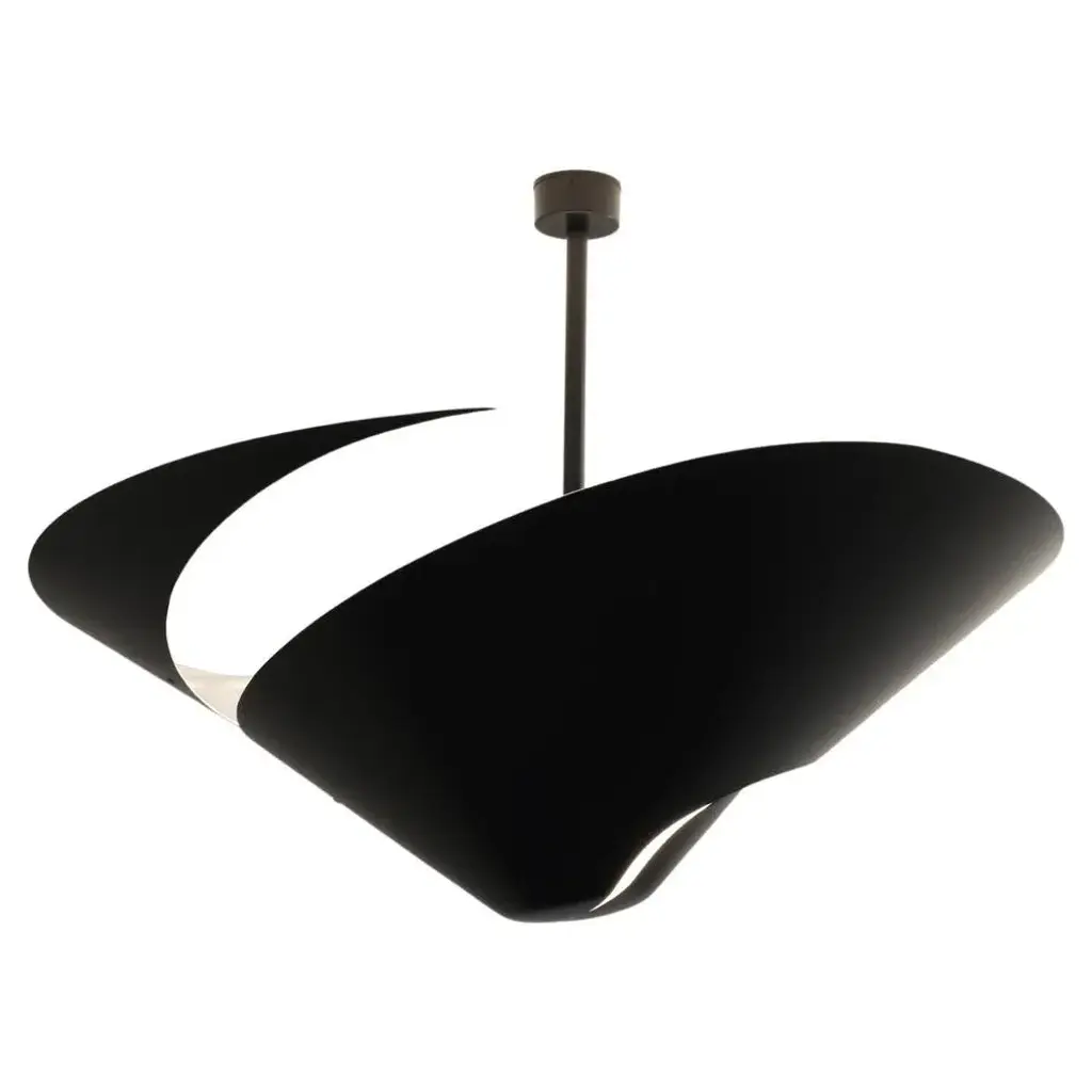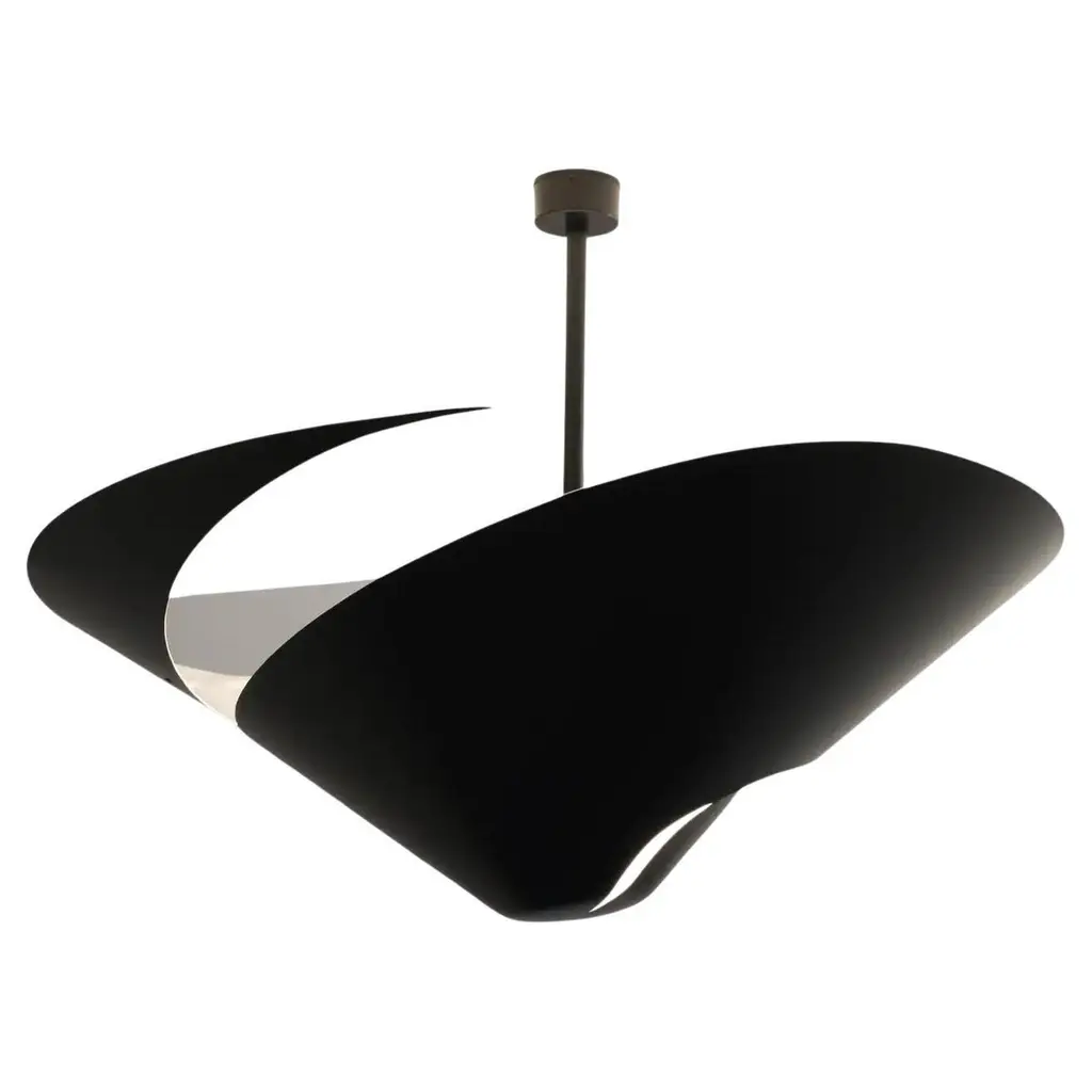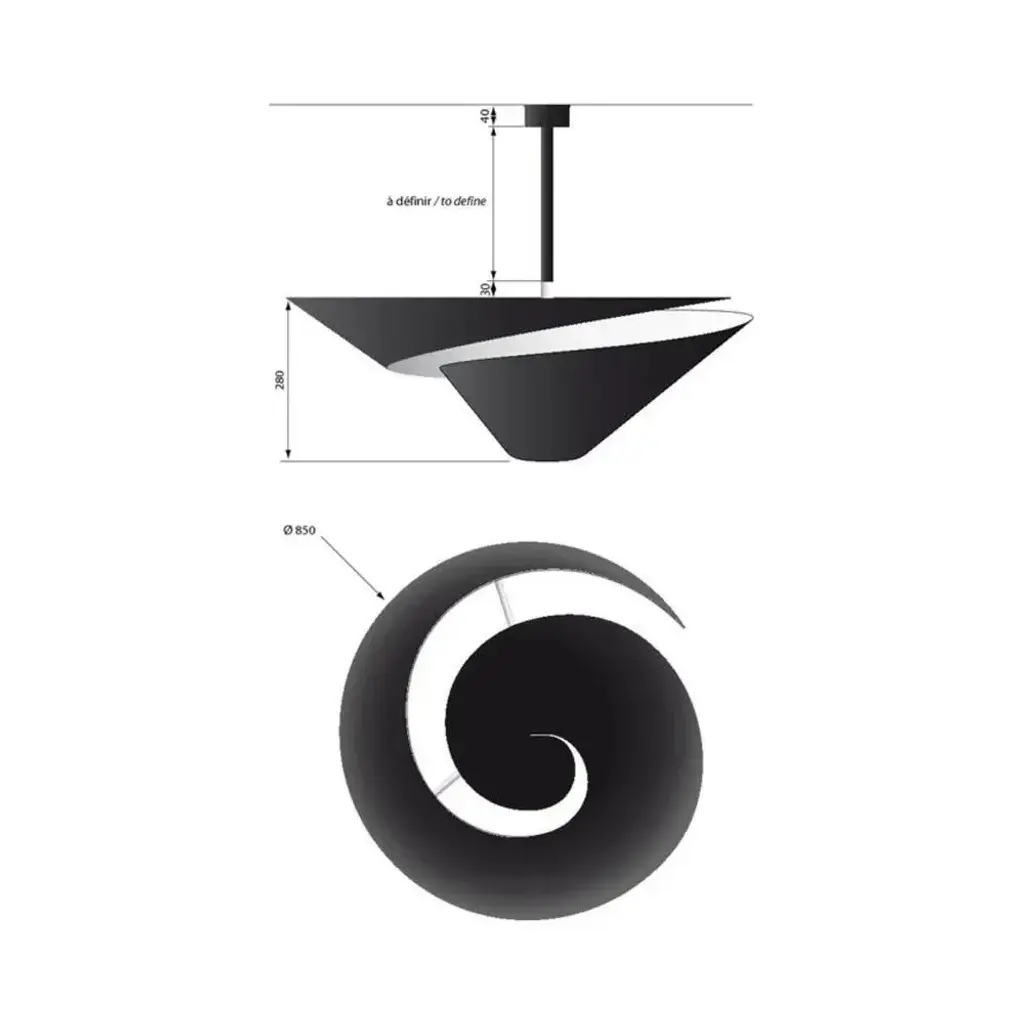 Ceiling lamp snail 60 by serge mouille dimensions: d 85 x h 50 cm materials: brass, steel, aluminium one of a king. Numbered. May be available separately in different colour. All our lamps can be wired according to each country. If sold to the usa it will be wired for the usa for instance. An emblematic design from 1955, the serge mouille ø 85 cm escargot ceiling light is a faithful reissue of the period model. Made in france by éditions serge mouille, it consists of a black steel body in the shape of a spiral with a shiny white interior for a pleasant diffusion of light. May be available separately in white, this numbered model with certificate of authenticity is delivered as soon as possible. Its height is to be defined when ordering. up to 250v (europe/uk standard).