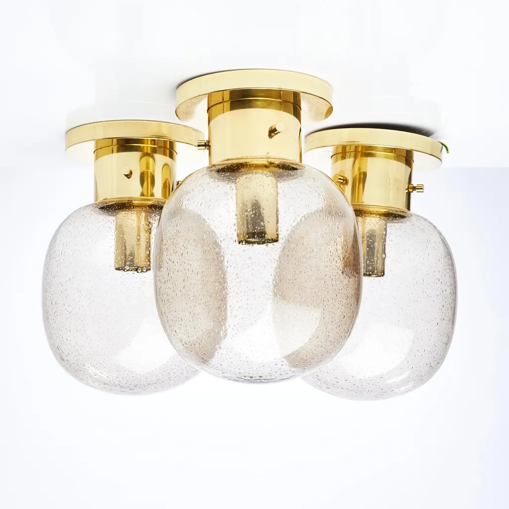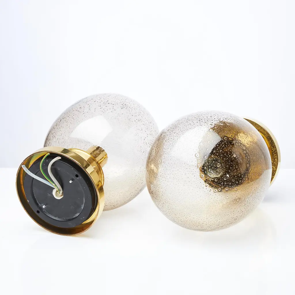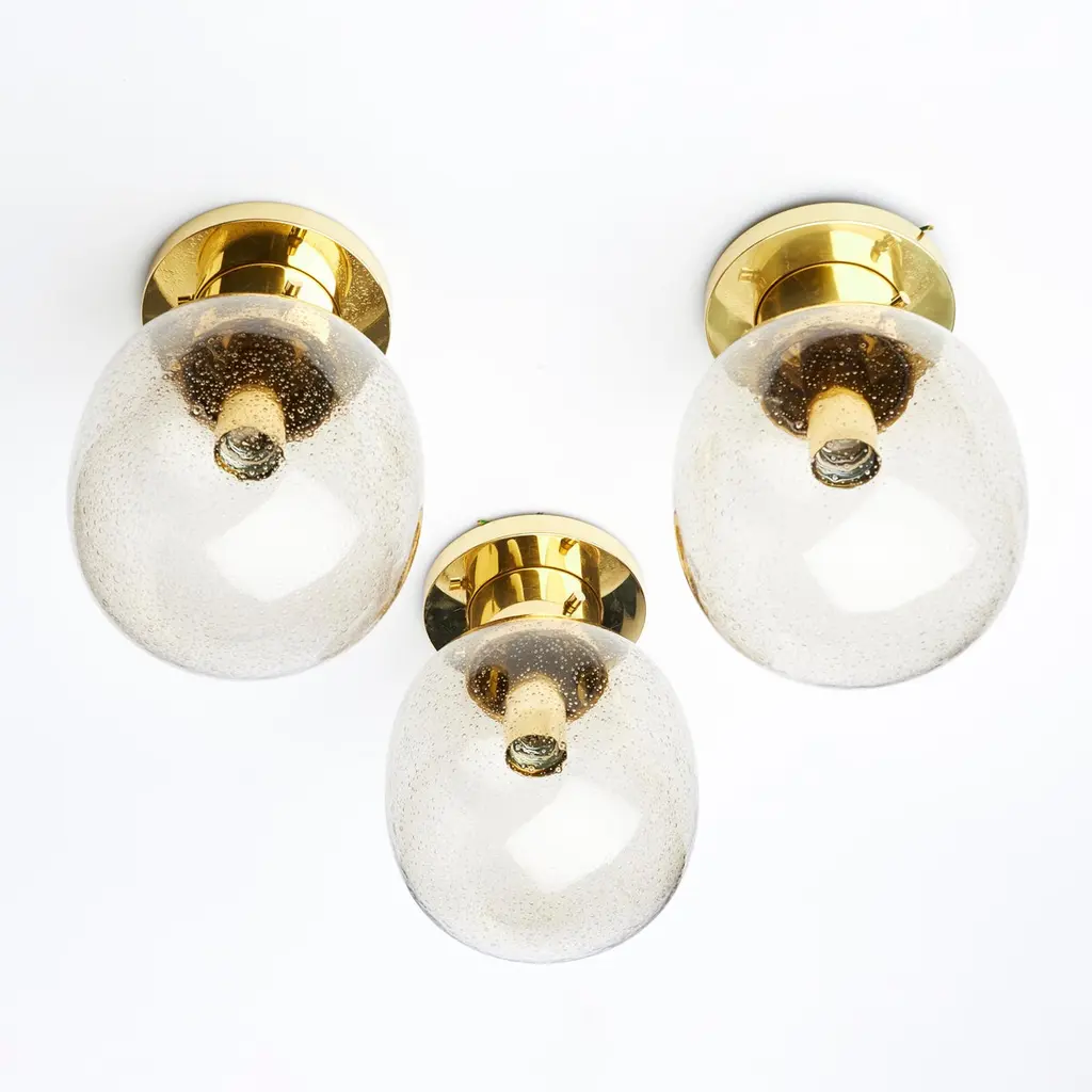 Ceiling lamp by Glashütte Limburg Brass and glass Germany 1970s LabelledGood condition5 lamps available , price for 1Vintage ceiling lamps made of brass and mouth-blown glass, very rare model manufactured by Limburg in the 1970s in Germany.These unique pieces, in perfect condition, feature slightly bubbled glass, giving each lamp an elegant and distinctive look. Their rarity makes them exceptional collectibles .