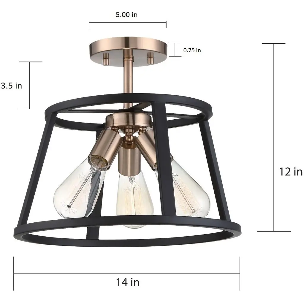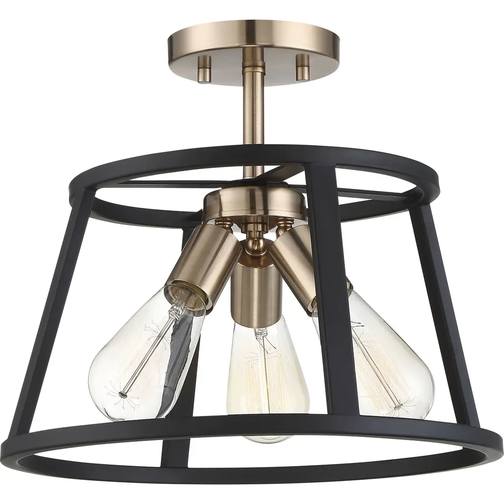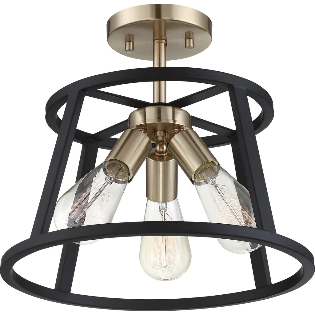 Chassis; 3 Light; Semi-Flush Mount Fixture; Copper Brushed Brass Finish with Matte Black Frame