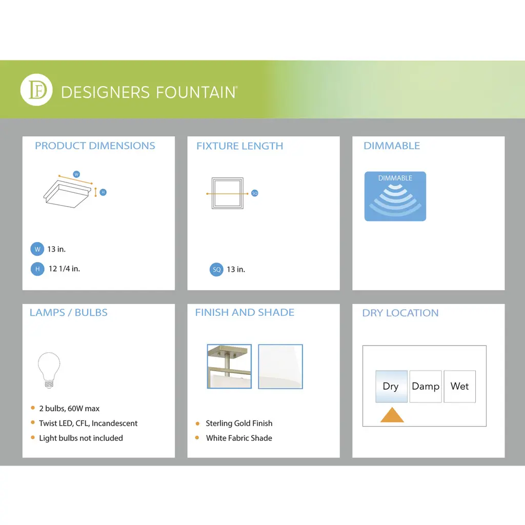 Chloie 2 Light 13 Inch Sterling Gold Semi-Flush Ceiling Light
