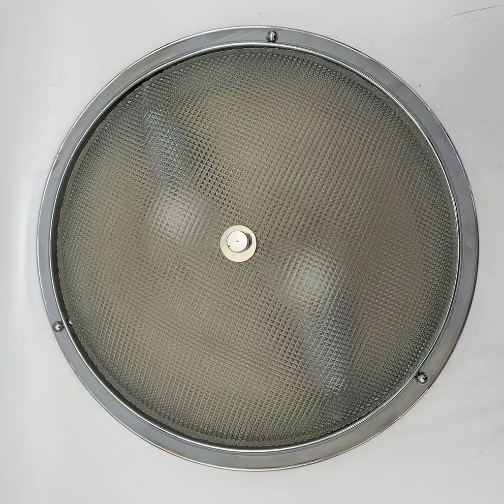 A modern design of timeless character, this ceiling lamp will make for an iconic accent to a vintage or contemporary interior. Handmade by expert artisans of chromed brass and transparent glass, it supports E14 lightbulbs. It comes ready for use. Please consult the Concierge for further information and requests.