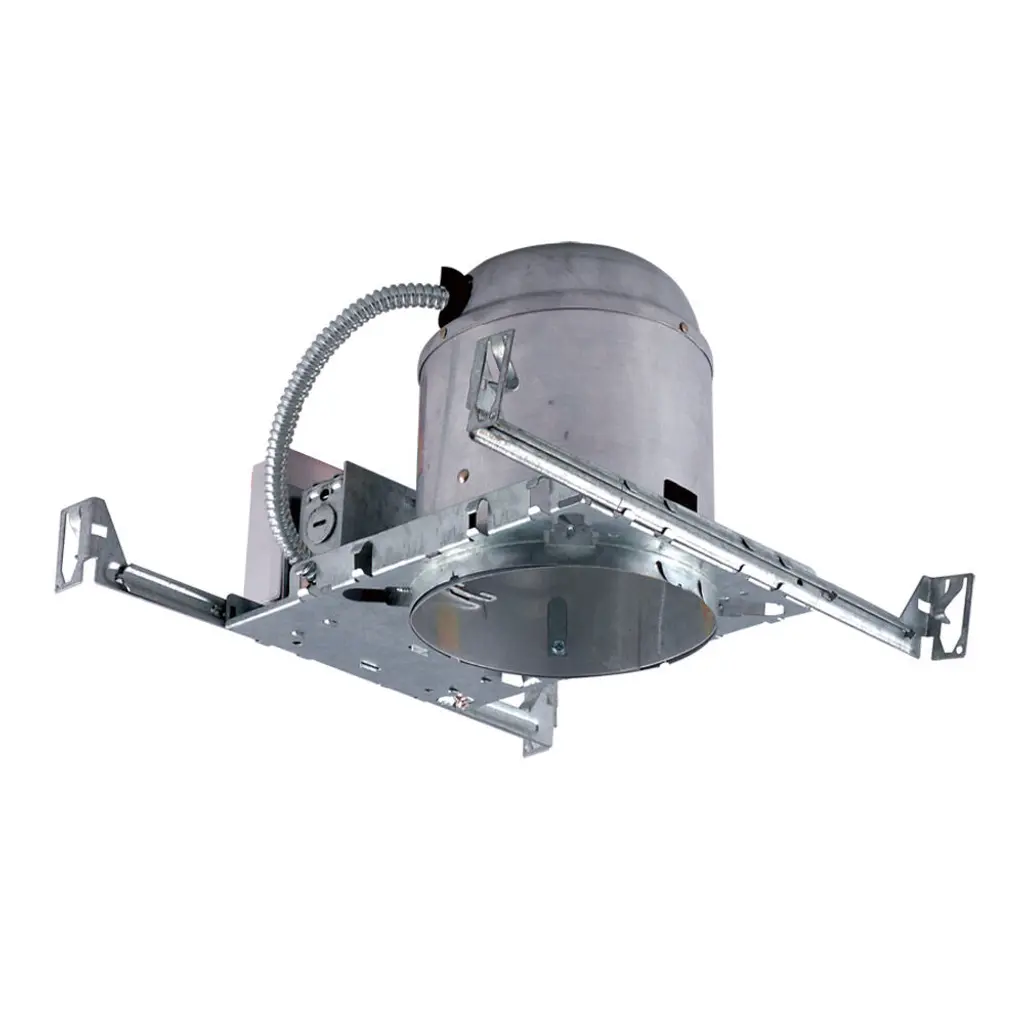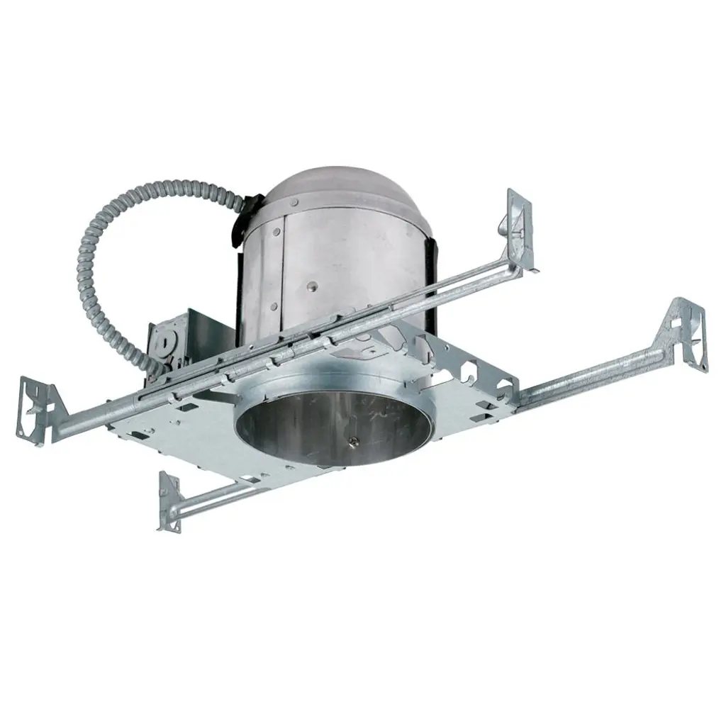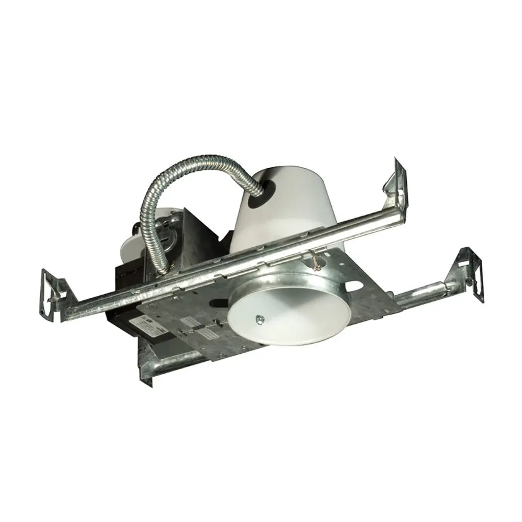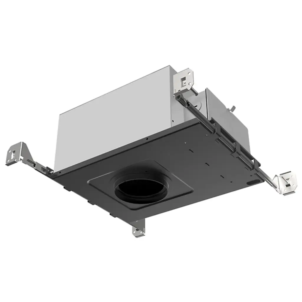 Huxe presents the Cian 6" LED New Construction Shallow IC/Non-IC Air-Tight Housing. With LED quick connector, it is UL and CUL listed for damp locations. It features notched mounting for easy alignment. Slotted interlocking bar hangers provide solid mounting on 24" centers. Air-tight rating reduces airflow between living spaces and unconditioned areas providing additional energy savings. The piece is suitable for a new construction, regardless of if insulation is present, including residential applications in a single-story home or on the second level of a two-story home or commercial applications in spaces such as offices, single-story retail, and hospitality environments. For a complete fixture, order housing and trim.