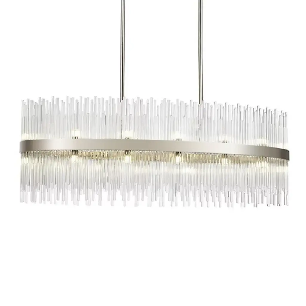 Presented by Zeev Lighting, the Citadel Oval Linear Suspension features a decadent arrangement of glass and lustrous metalwork to provide instant glamour among locales of choice. Whether displayed as a solo piece or in multiples, the Citadel is a piece of luminous jewelry for spaces serving across the spectrum of work or play.
