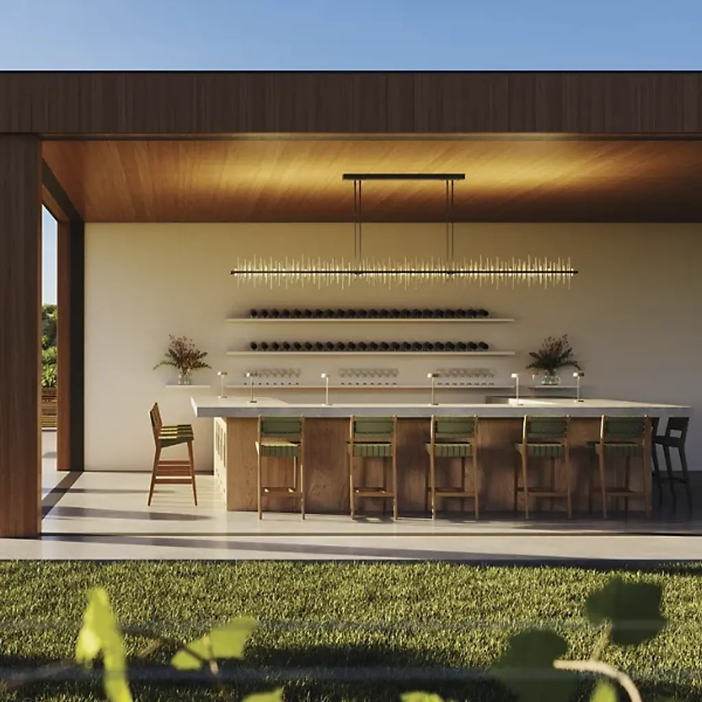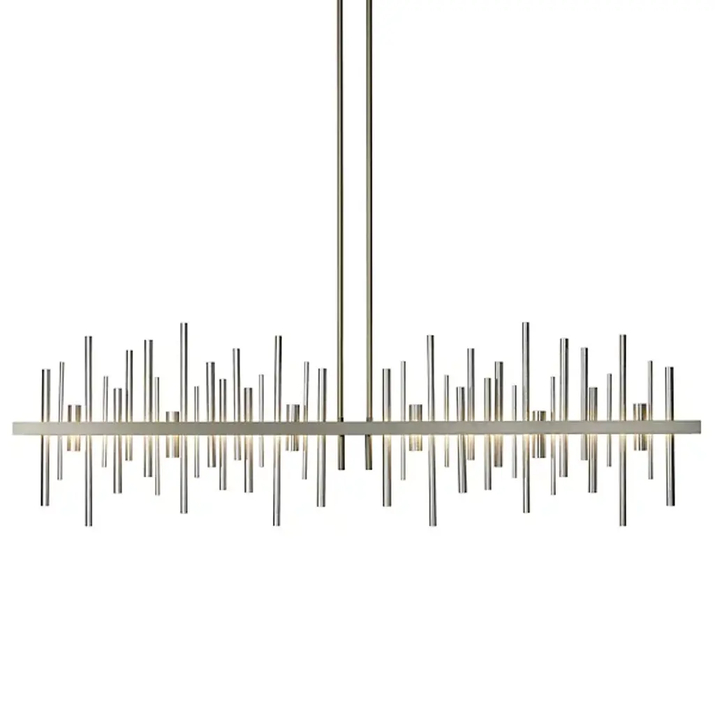Loft-worthy style appealing to contemporary tastes. The Cityscape Large LED Linear Suspension by Hubbardton Forge is an excellent accent piece handcrafted by talented artisans of Vermont. The horizontal suspension frame includes an array of cylindrical rods of varying heights that trace multiple skyscraper silhouettes in the cityscape. Powered by a built-in LED module, the fixture creates a stunning view composed of reflections of skyscrapers, as seen from the waterfront. Striking a fine balance between form and function, its simple design offers abundant illumination and a distinct style that is sure to be noticed.