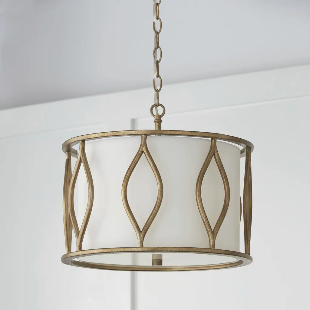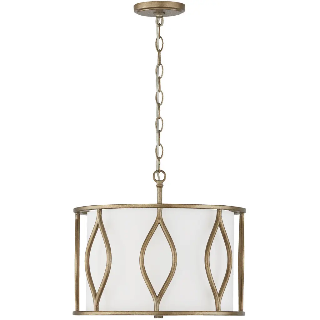 Add a layer of luxury to any space with the statement-making Cohen Dual Mount. Whether hung as a pendant or semi-flush, the curved, open columns frame the fabric shade, creating a sophisticated luminaire. The white glass diffuser's tailored look adds a soft glow to any space, while the handcrafted Mystic Luster finish creates subtle shimmer and texture.