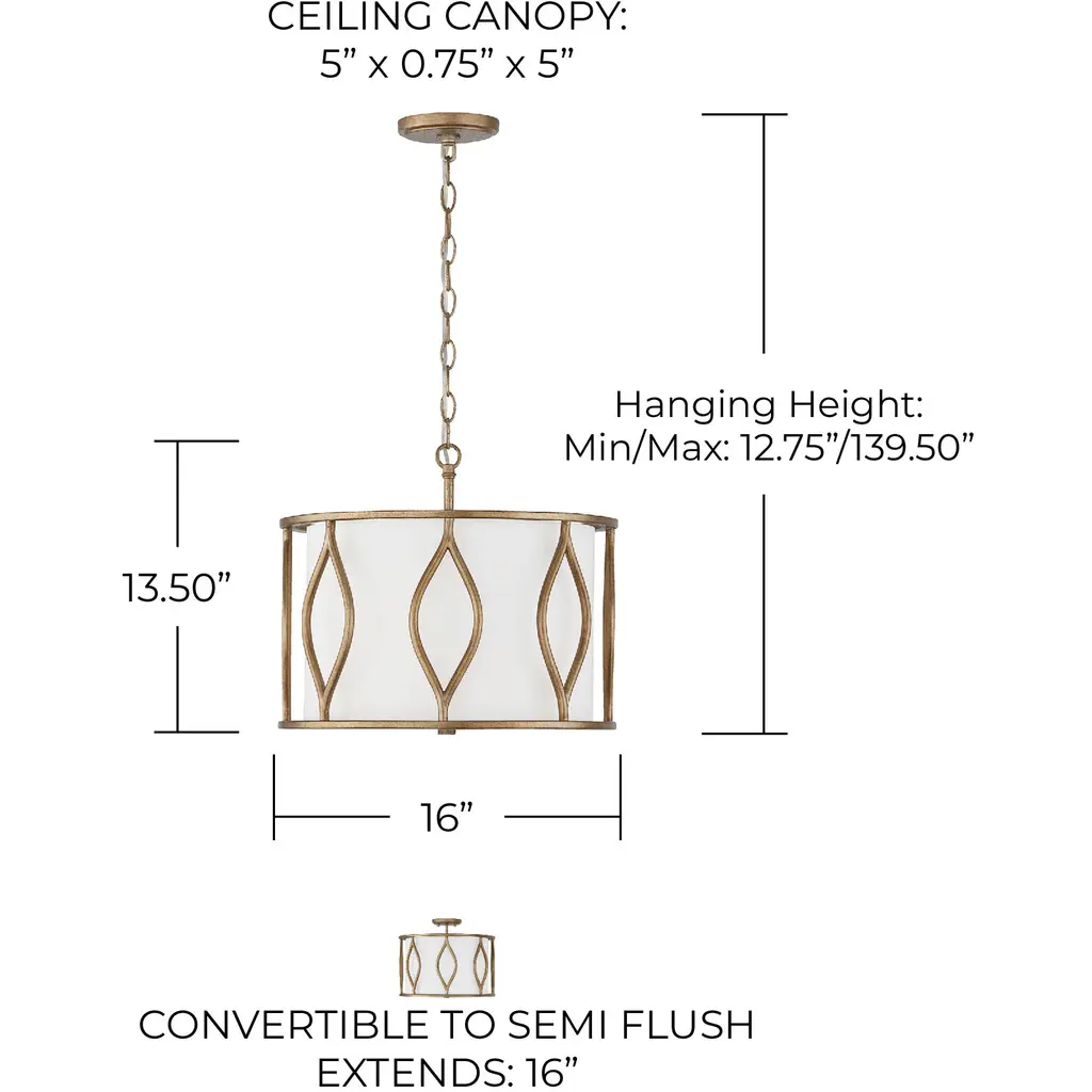 Cohen 3 Light 16 Inch Mystic Luster Semi-Flush Ceiling Light, Convertible Dual Mount