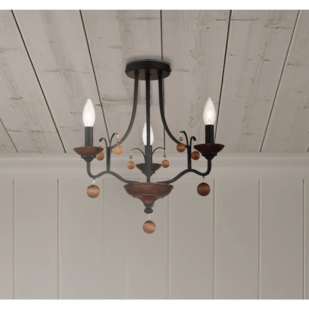 Colonial Charm 3 Light 16.75 Inch Old World Bronze With Walnut Semi Flush Ceiling Light
