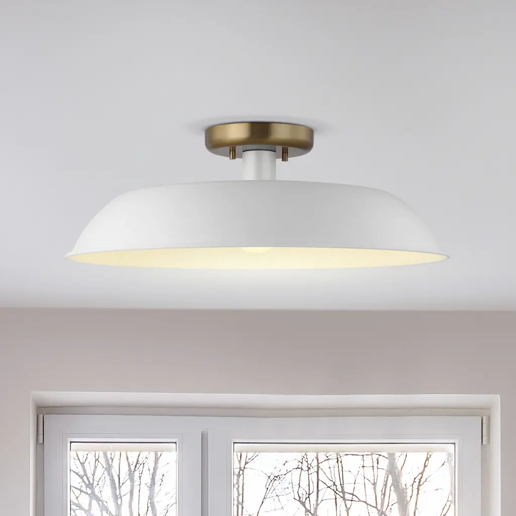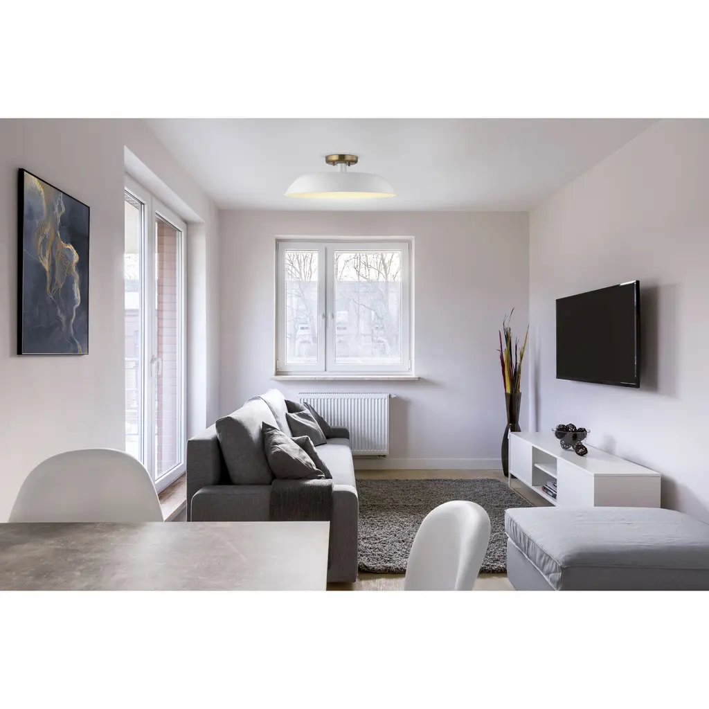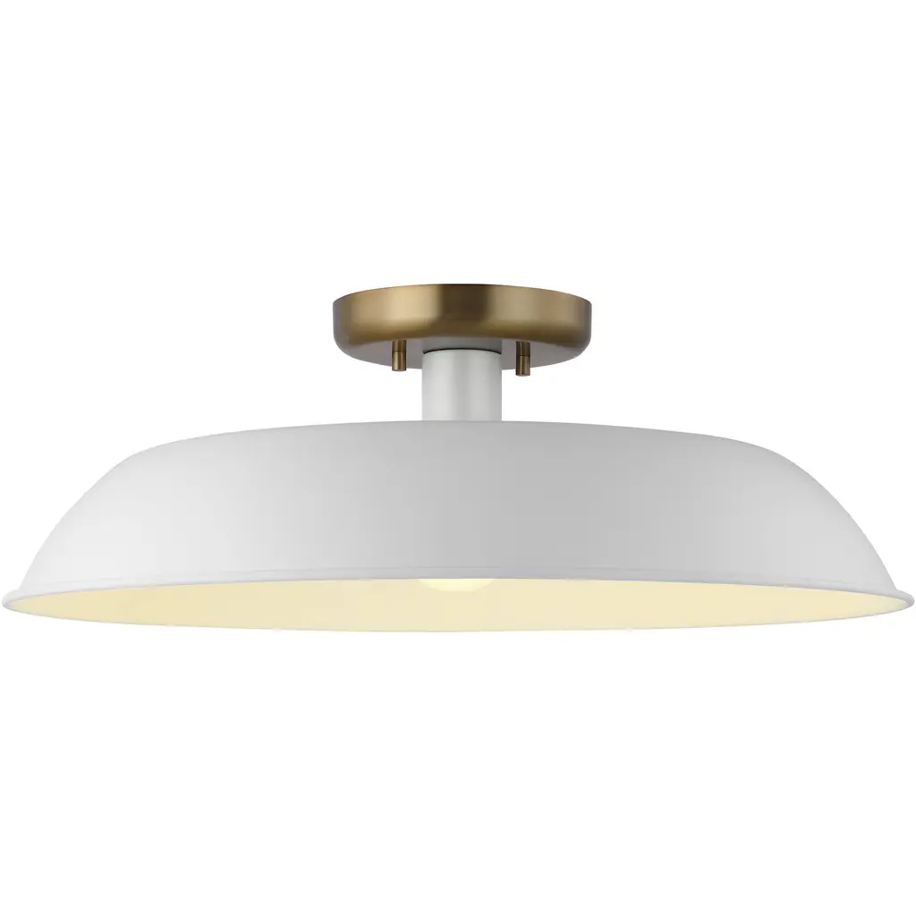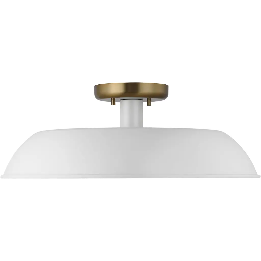 Colony 1-Light Medium Semi Flush Mount Fixture - Matte White with Burnished Brass