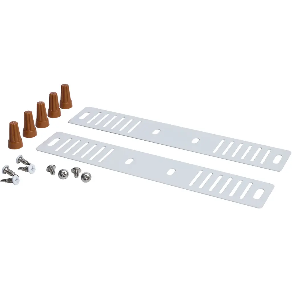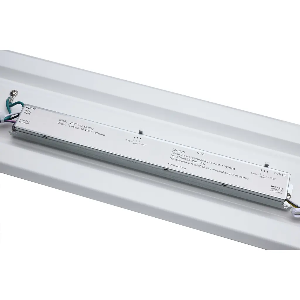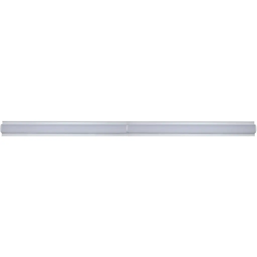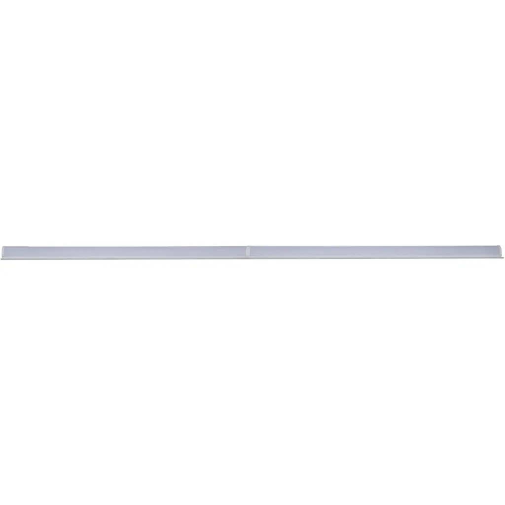 SATCO NUVO's LED Strip Retrofit Kit, 65-1032, is an energy-efficient upgrade for existing fluorescent fixtures. Designed with adjustable mounting strips to fit housings 2.75"5.25" wide, this 8ft kit features field-selectable CCT and wattage, a frosted polycarbonate lens, and a durable steel body for even light and long life. The 0-10V dimming driver ensures smooth performance, and DLC Premium certification supports rebate eligibility. Fast, lens-free installation reduces labor and costs-ideal for warehouses, workshops, and other commercial or industrial spaces.