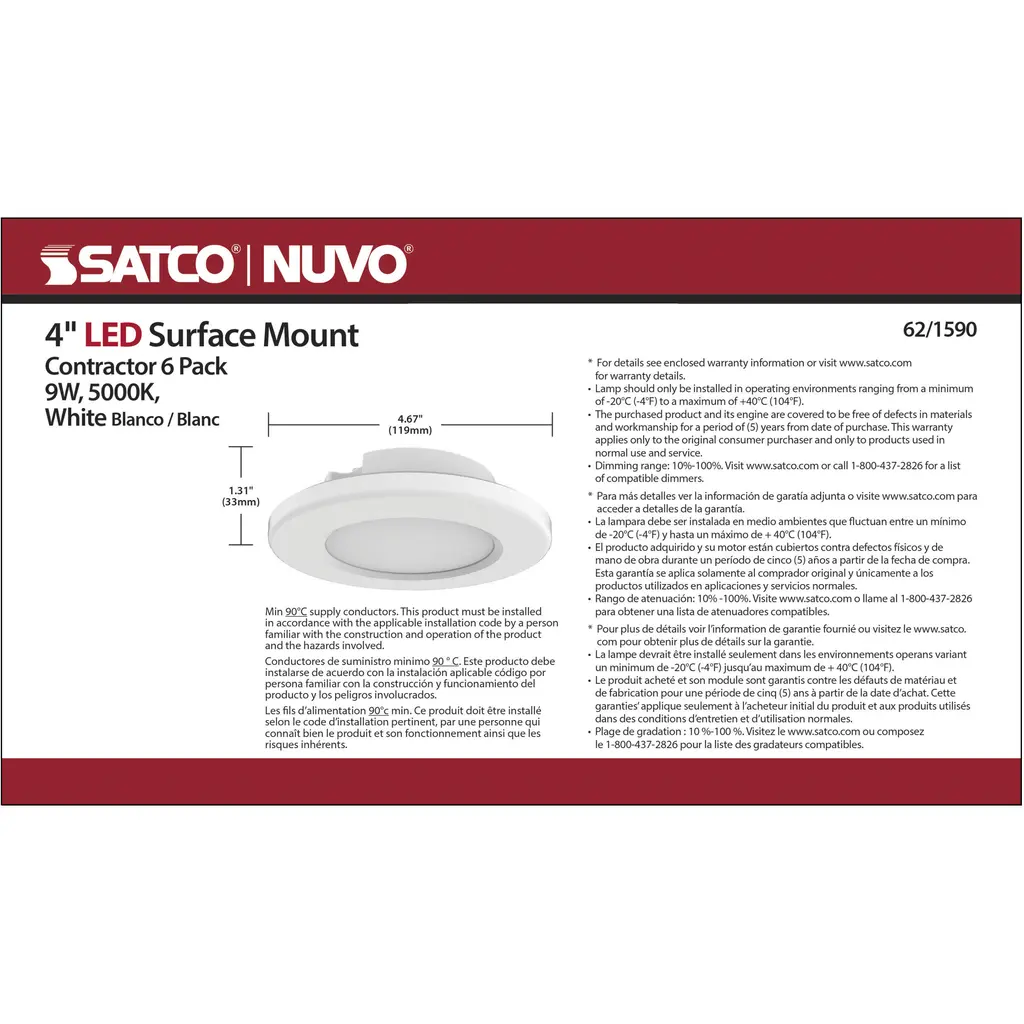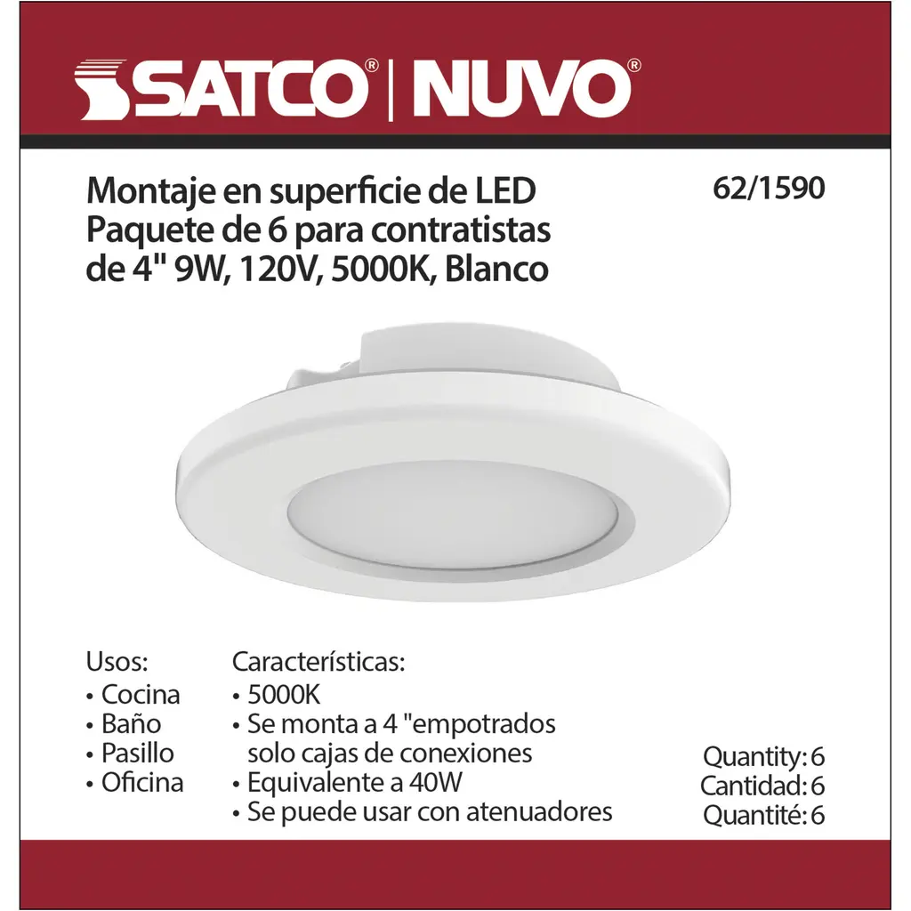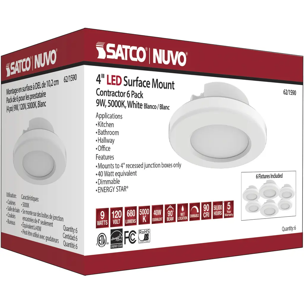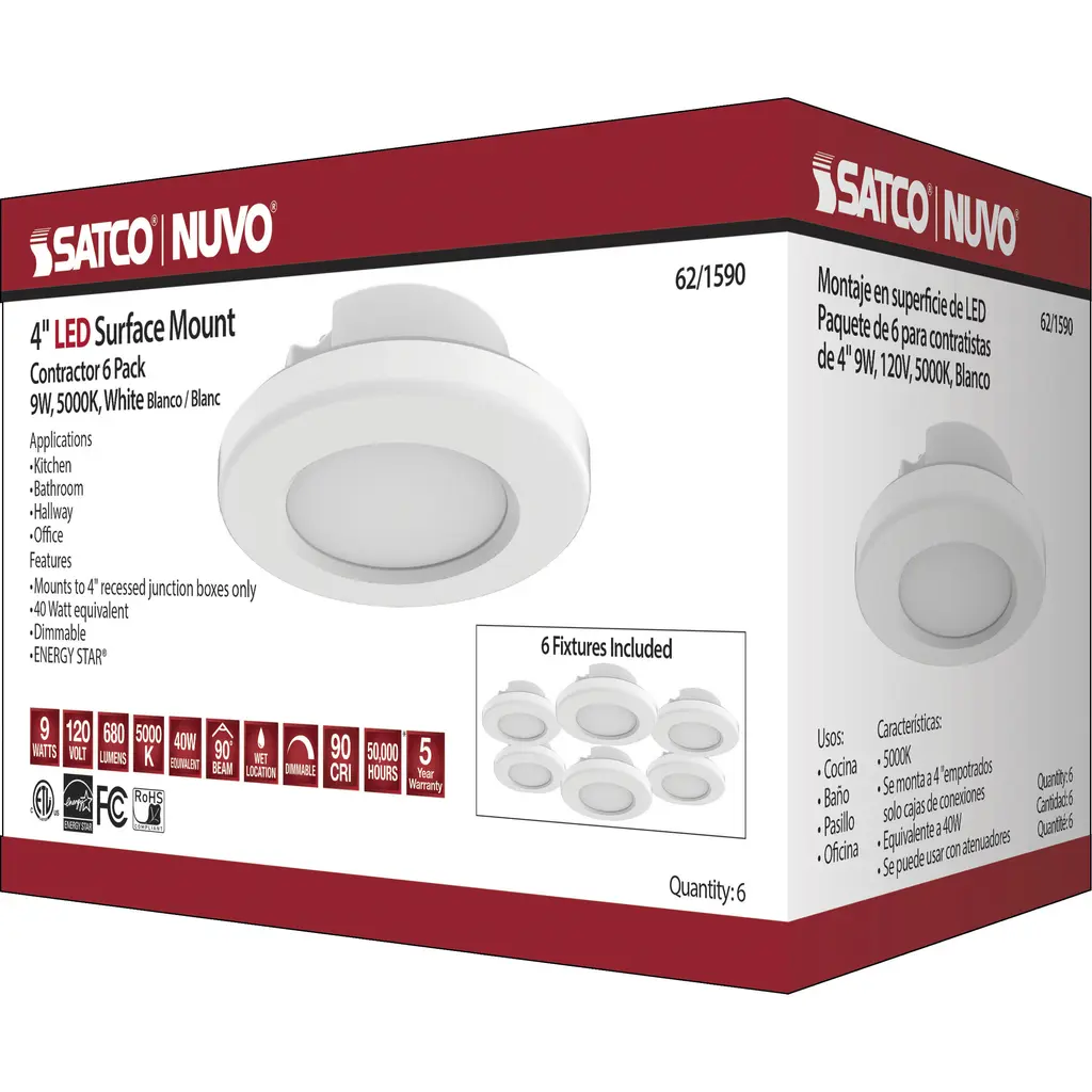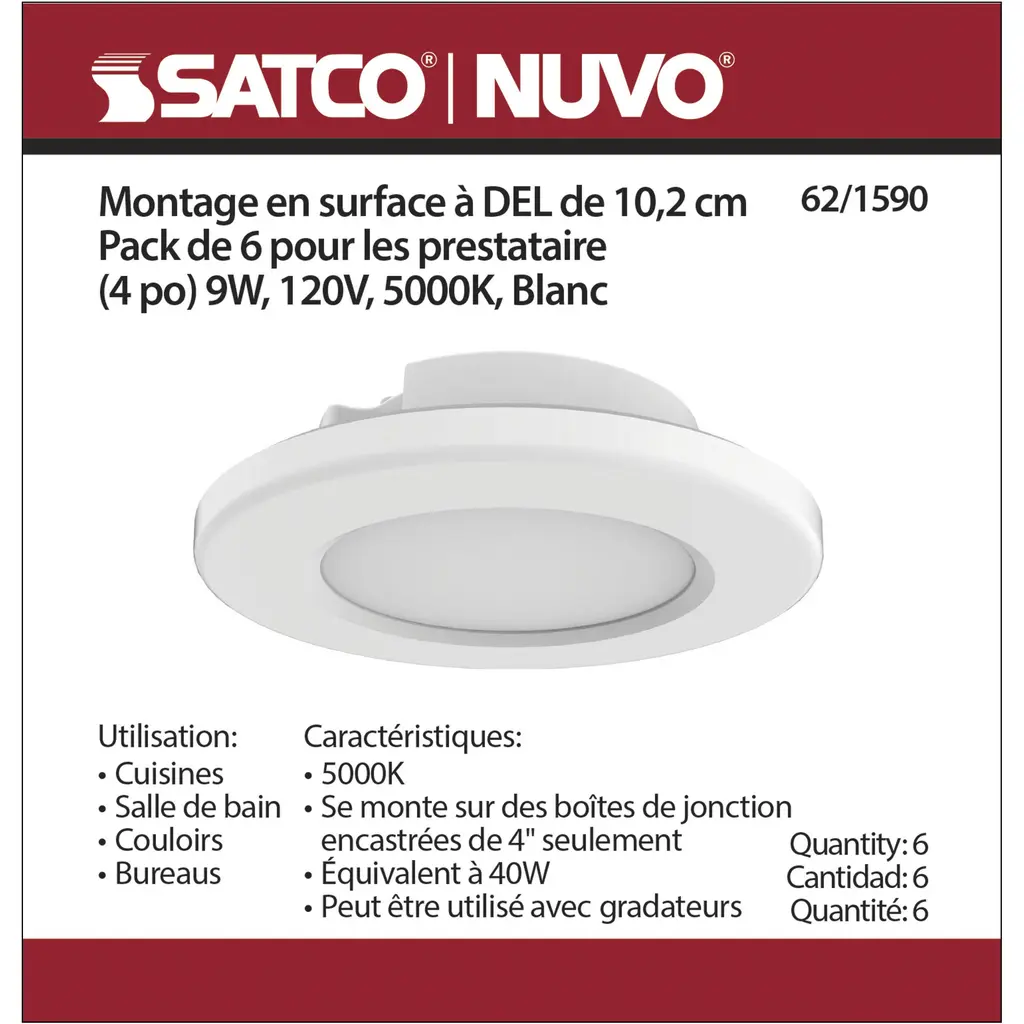 4 Inch - LED Surface Mount Fixture - 5000K - 6-Unit Contractor Pack - White