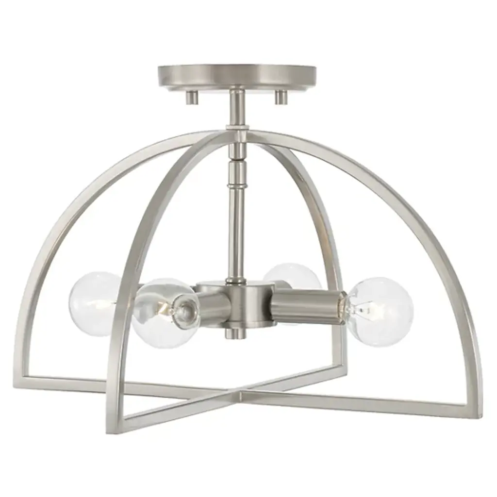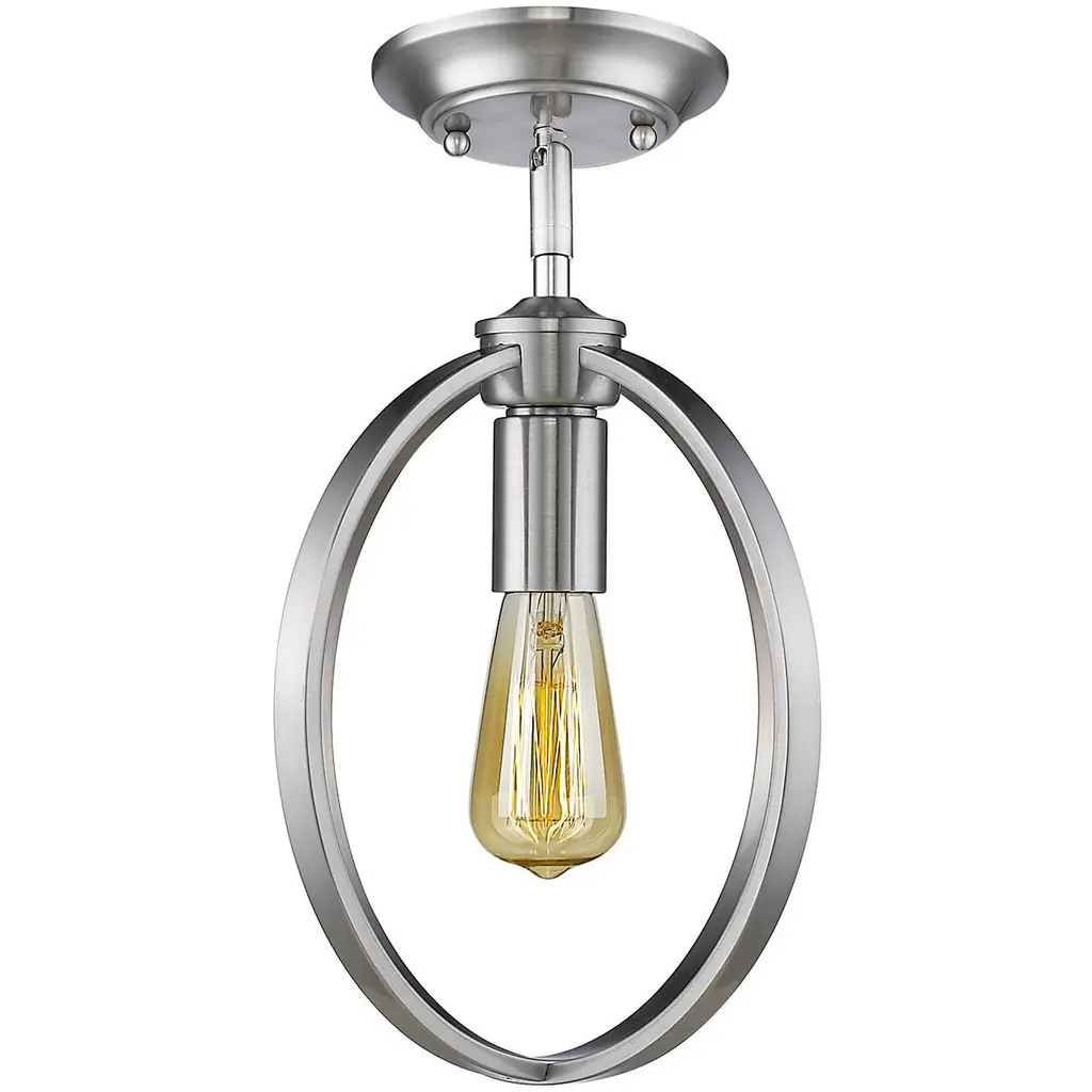 Bring transitional elegance into your home with the Golden Lighting Colson 1-light Semi-Flush Mount in Pewter. Featuring a design that omits a shade, it creates a warm atmosphere that enhances any interior.This semi-flush mount features a clean open-orb frame that beautifully complements the light, ensuring a sophisticated glow.The Pewter finish offers a soft and classic warmth, with a subtle grey hue that brings an understated charm to both classic and contemporary spaces. Its elegant satin luster gently diffuses light without glare.Perfect for entryways, bedrooms, kitchens, and living areas with mid-height ceilings, this fixture is dry location rated for ideal use in indoor areas. Its also designed with an adjustable height feature to cater to various ceiling angles.Overall dimensions are 9.88"W x 12"H x 9.88"D, and it requires 1 E26 medium base bulb (not included) with a maximum wattage of 100.The Golden Lighting craftsmanship ensures a lasting quality, creating a statement piece that adds elegance to your home decor.