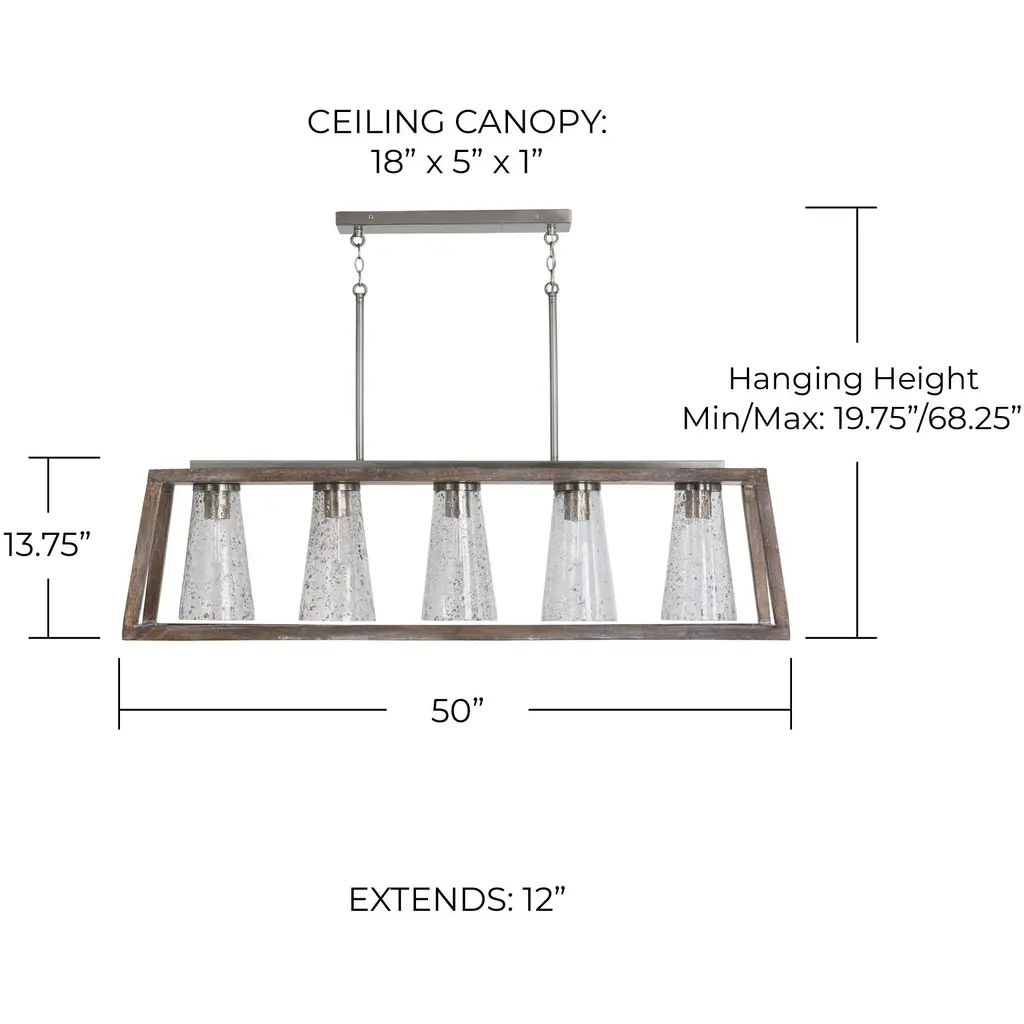 Connor 5 Light 50 Inch Black Wash And Matte Nickel Island Ceiling Light