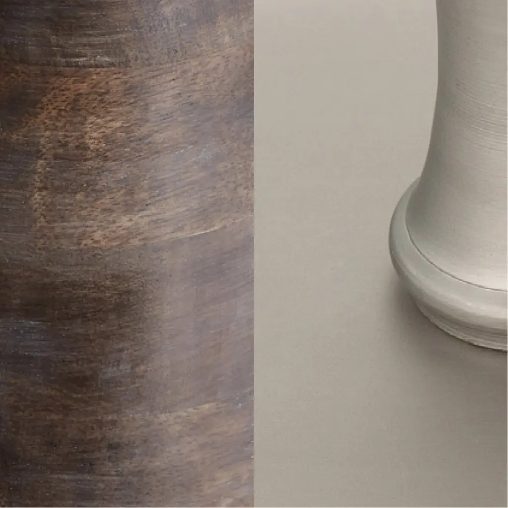 Modern silhouettes paired with natural handcrafted materials create a refined rustic look in this collection. Hand-blown, cone-shaped, stone seeded glass is paired with a handcrafted Mango wood frame. Slight variation may occur.