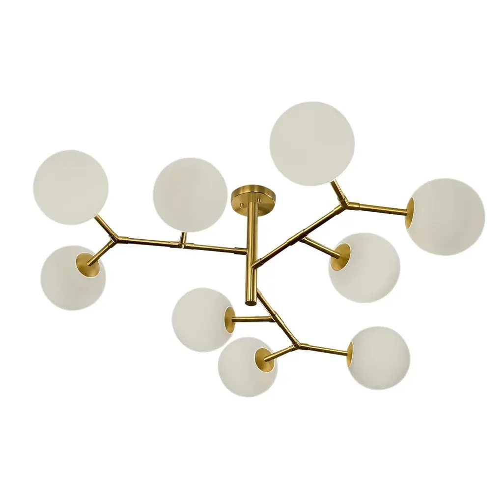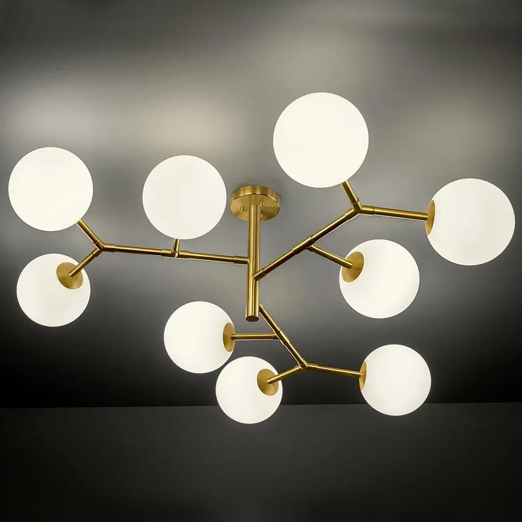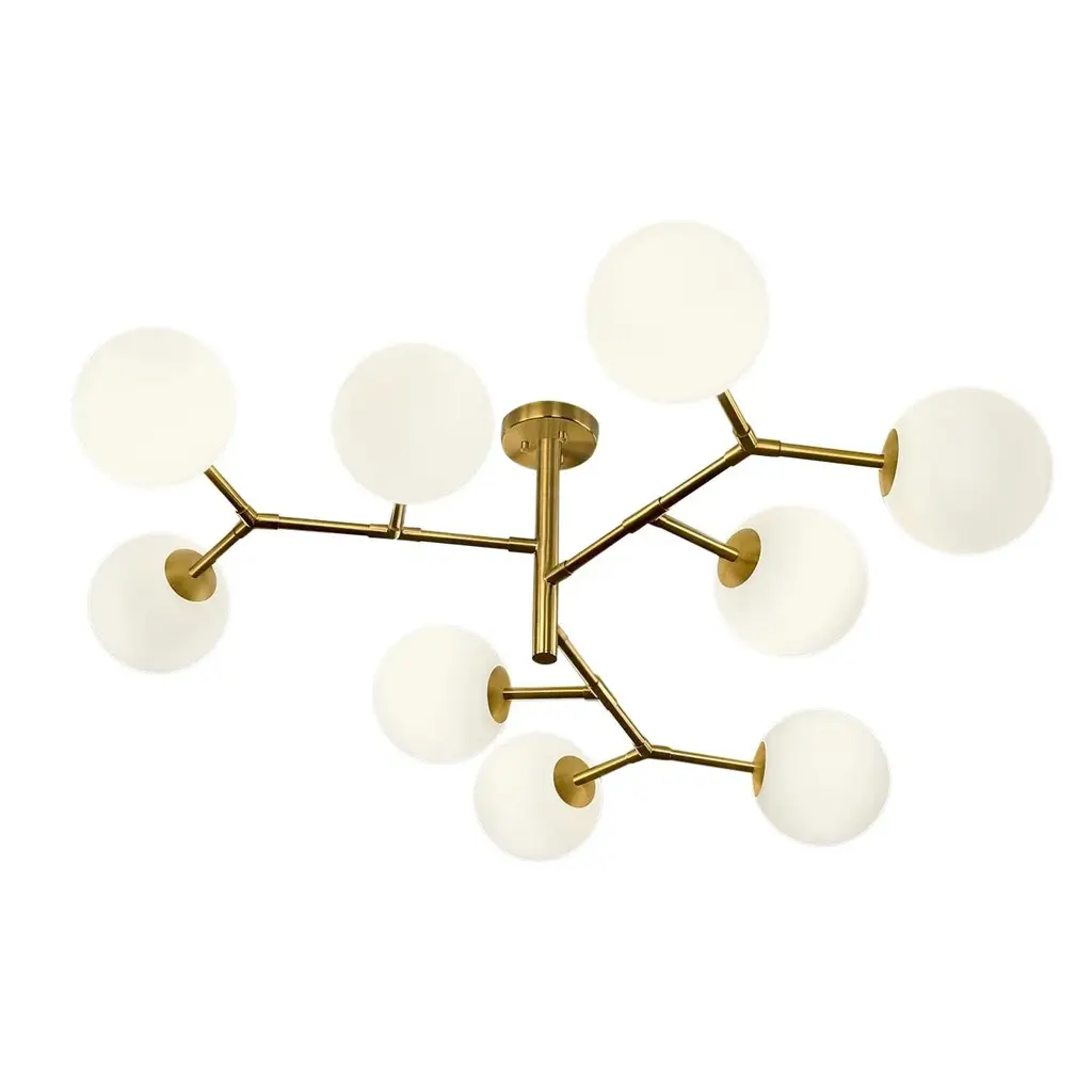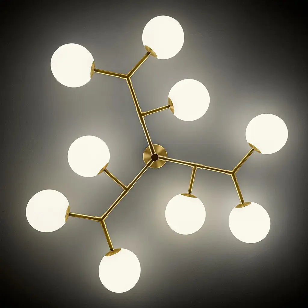 CONSTELLATION Ceiling Light - An Organic Design Giving A Random Pattern Of Arms And Opal Globes. Glasses Have Threaded Inserts To Screw On For A Durable Fixing. Custom Designs And Sizes Can Be Manufactured. - Material: STEEL WITH CRYSTAL Finish: Brushed Brass