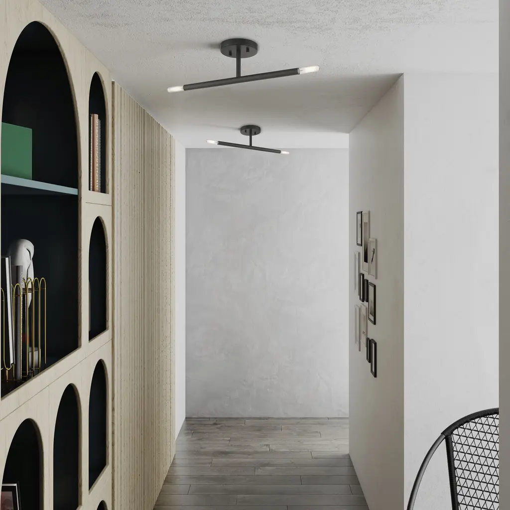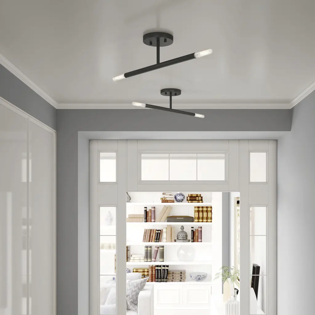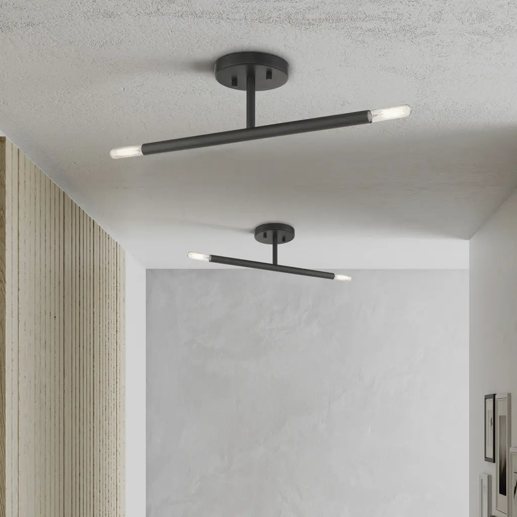 Copenhagen 2 Light 5.13 Inch Black Semi-Flush Ceiling Light