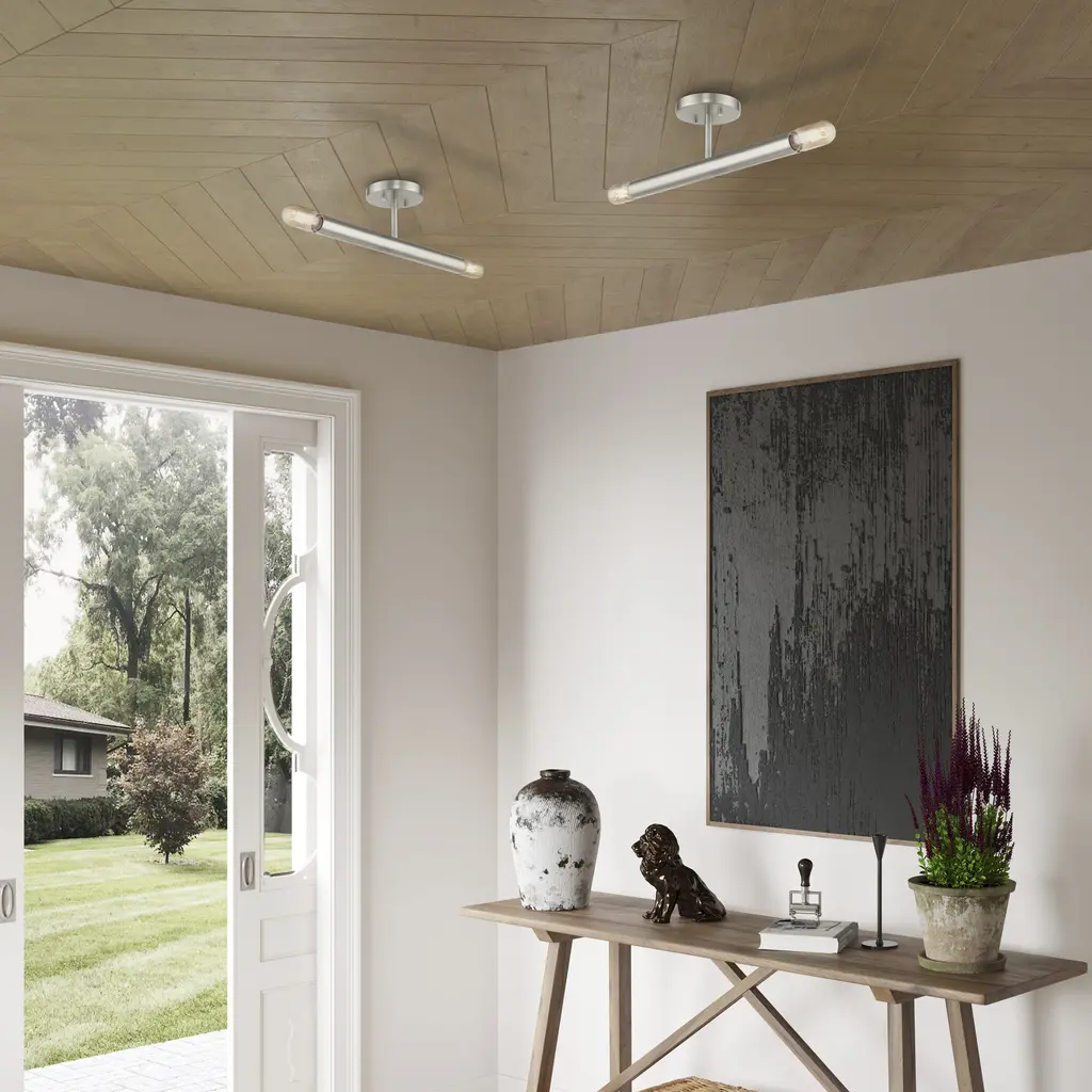 Copenhagen 2 Light 5.13 Inch Brushed Nickel Semi-Flush Ceiling Light