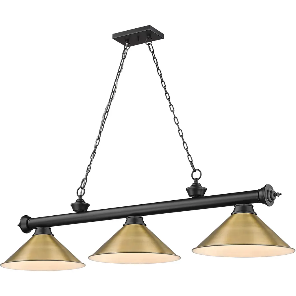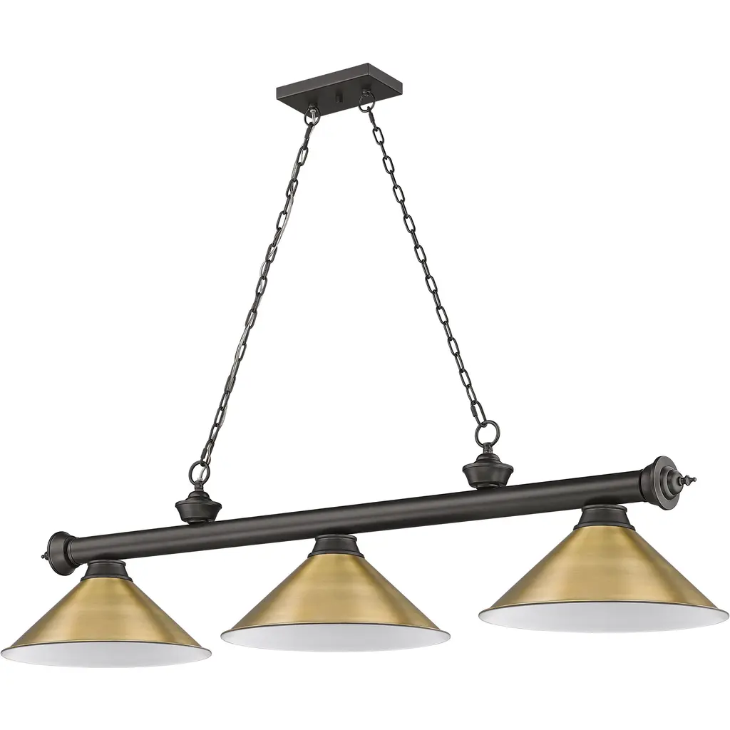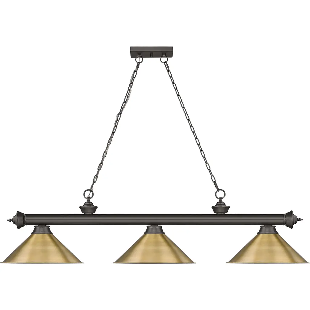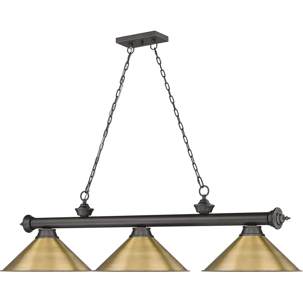 Cordon 3 Light 57.25 Inch Bronze Billiard Ceiling Light In Rubbed Brass Metal