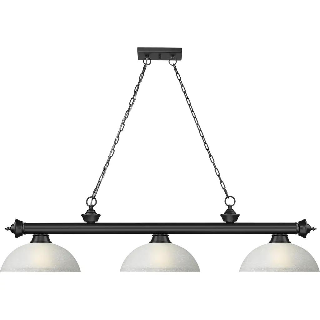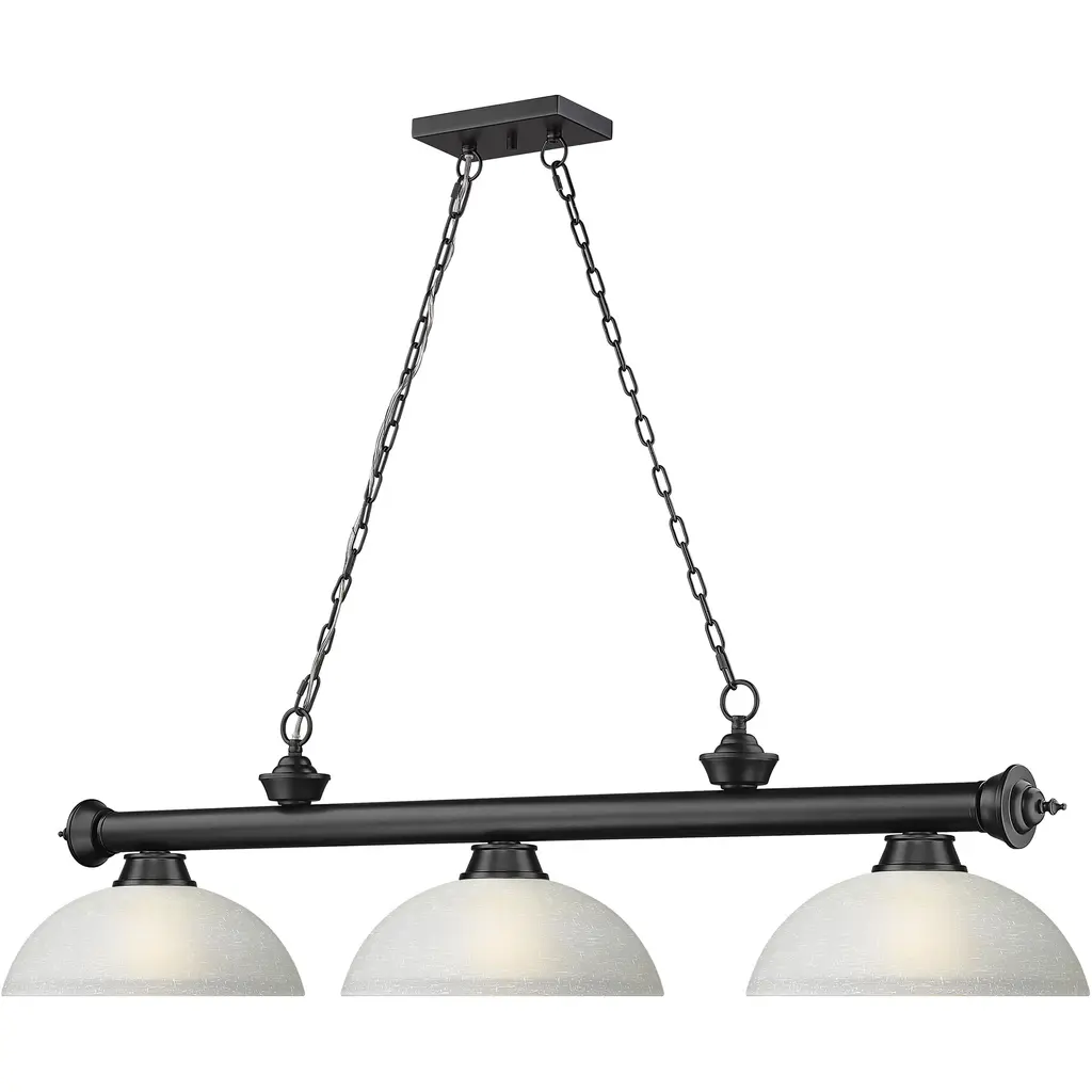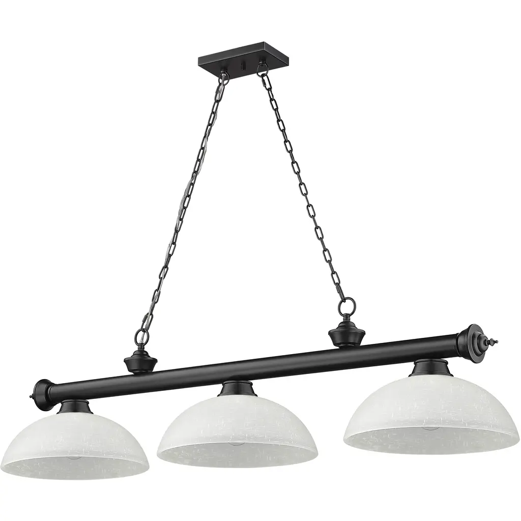 Cordon 3 Light 57.25 Inch Matte Black Billiard Ceiling Light In White Linen Glass