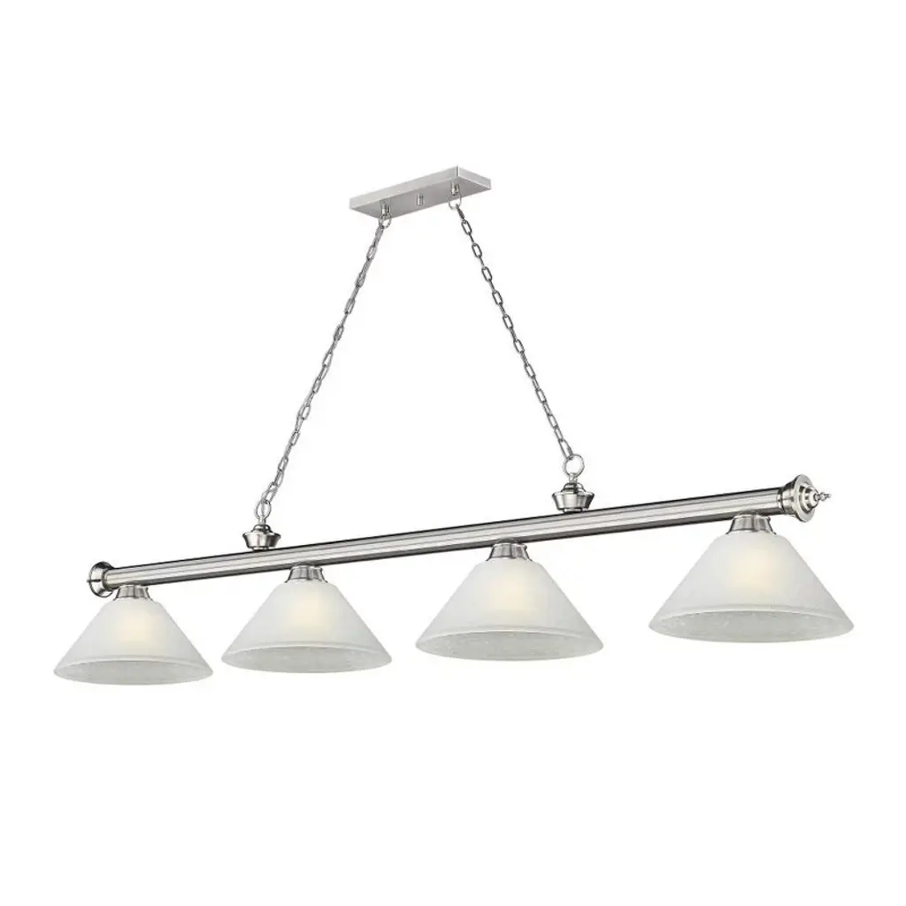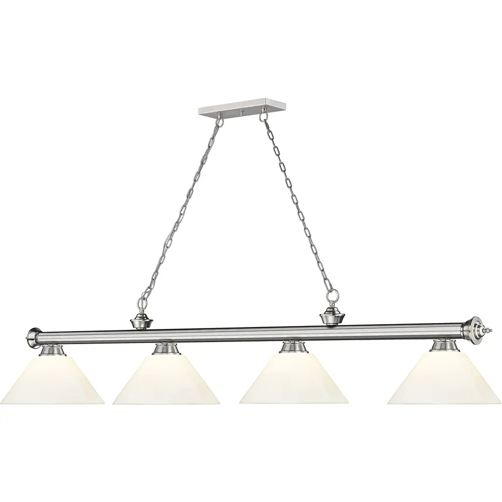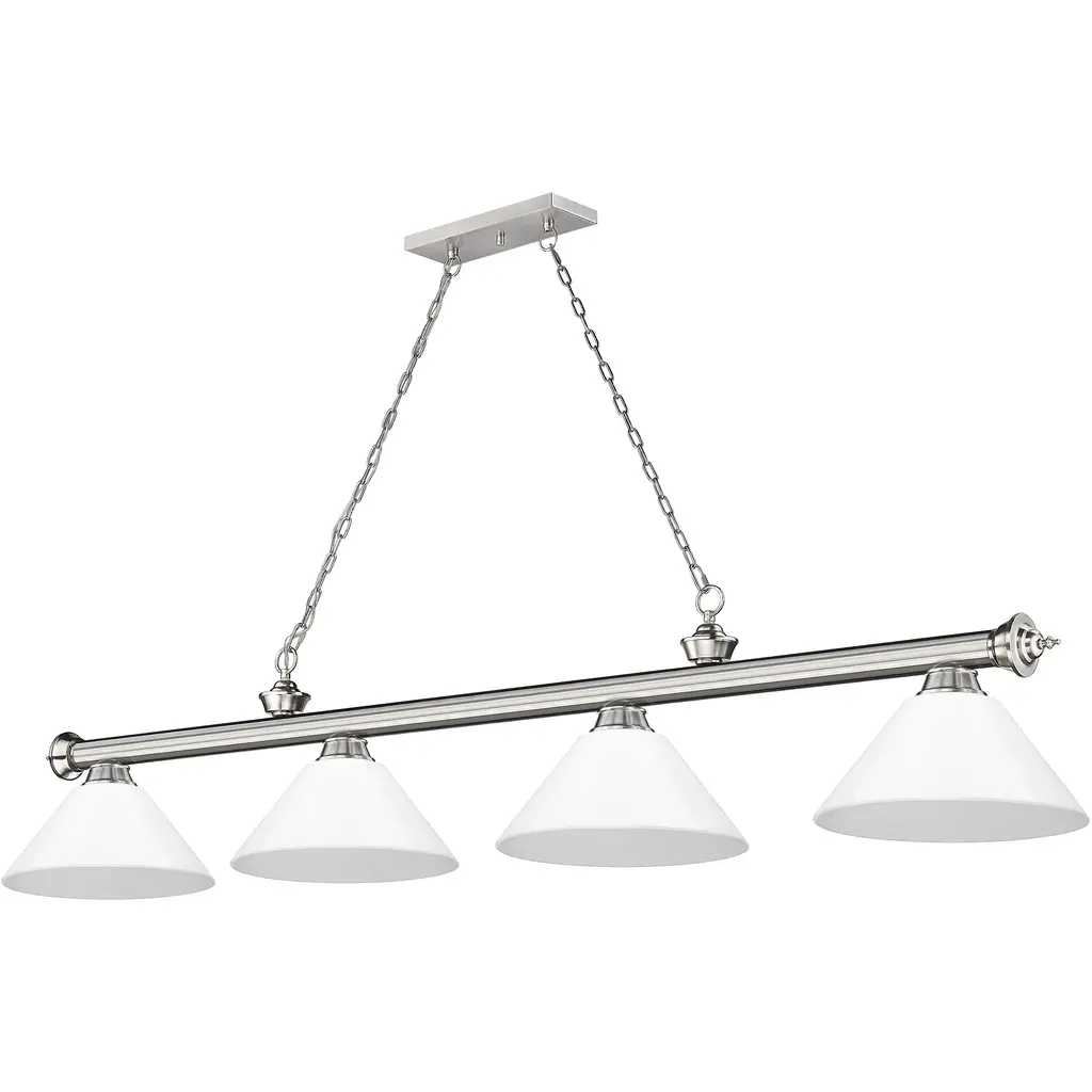 Cordon 4 Light 81.25 Inch Brushed Nickel Billiard Ceiling Light In White Plastic
