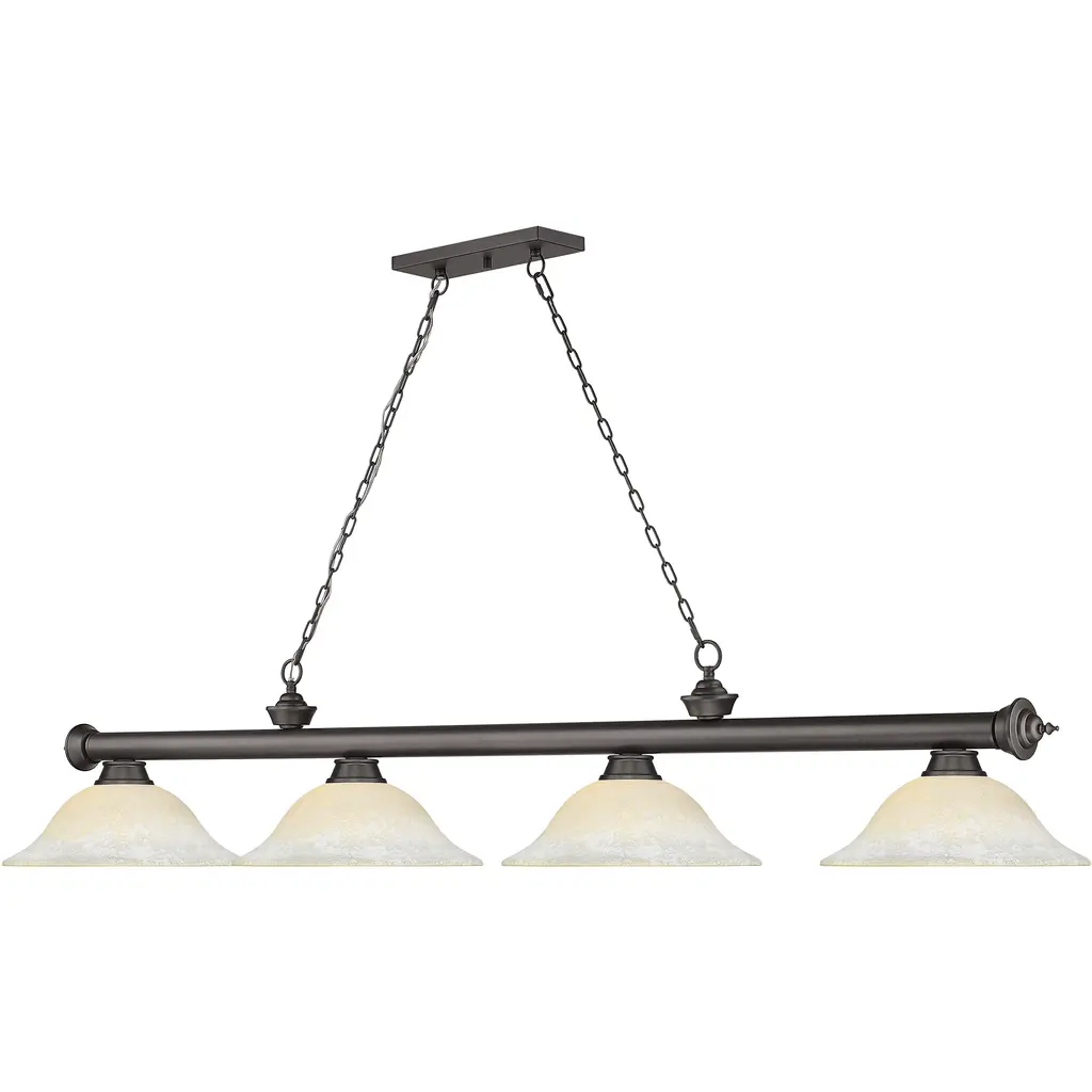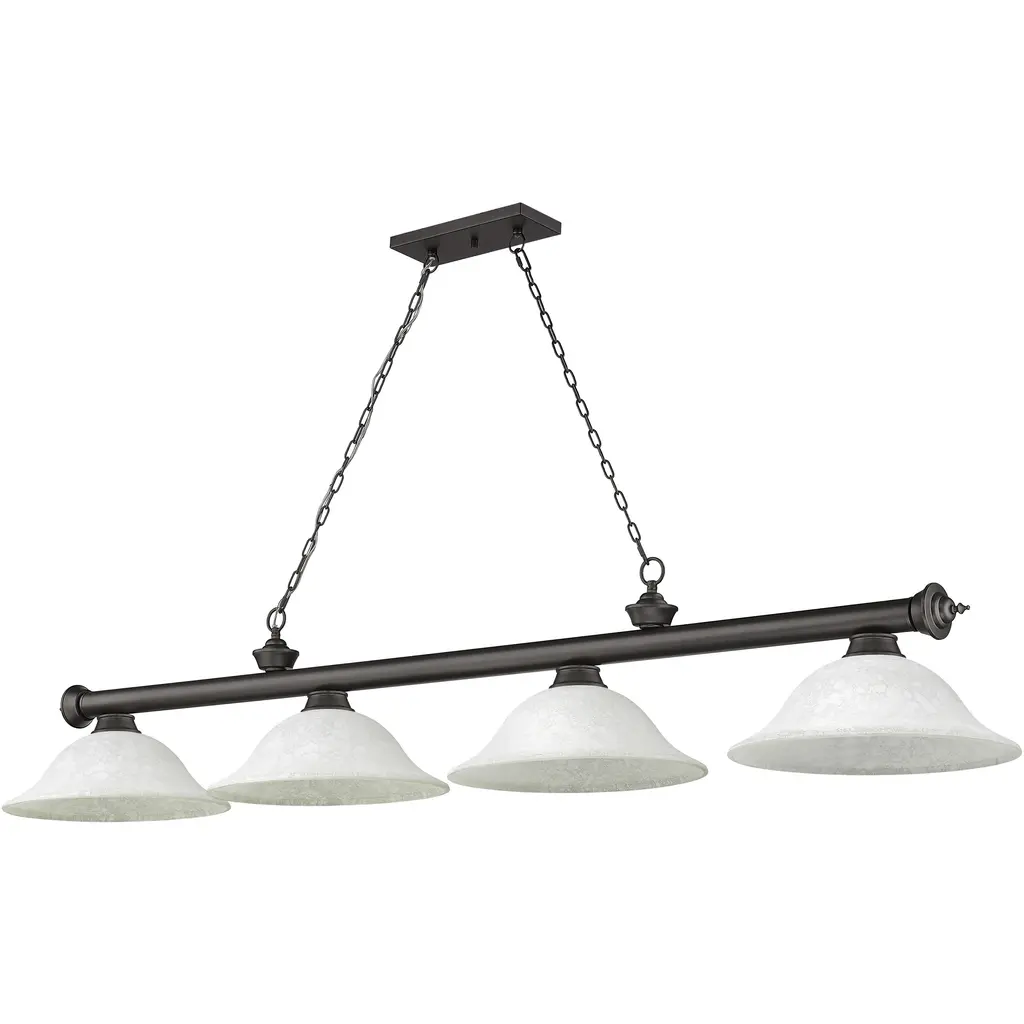 Cordon 4 Light 81.75 Inch Bronze Billiard Ceiling Light In White Mottle Glass