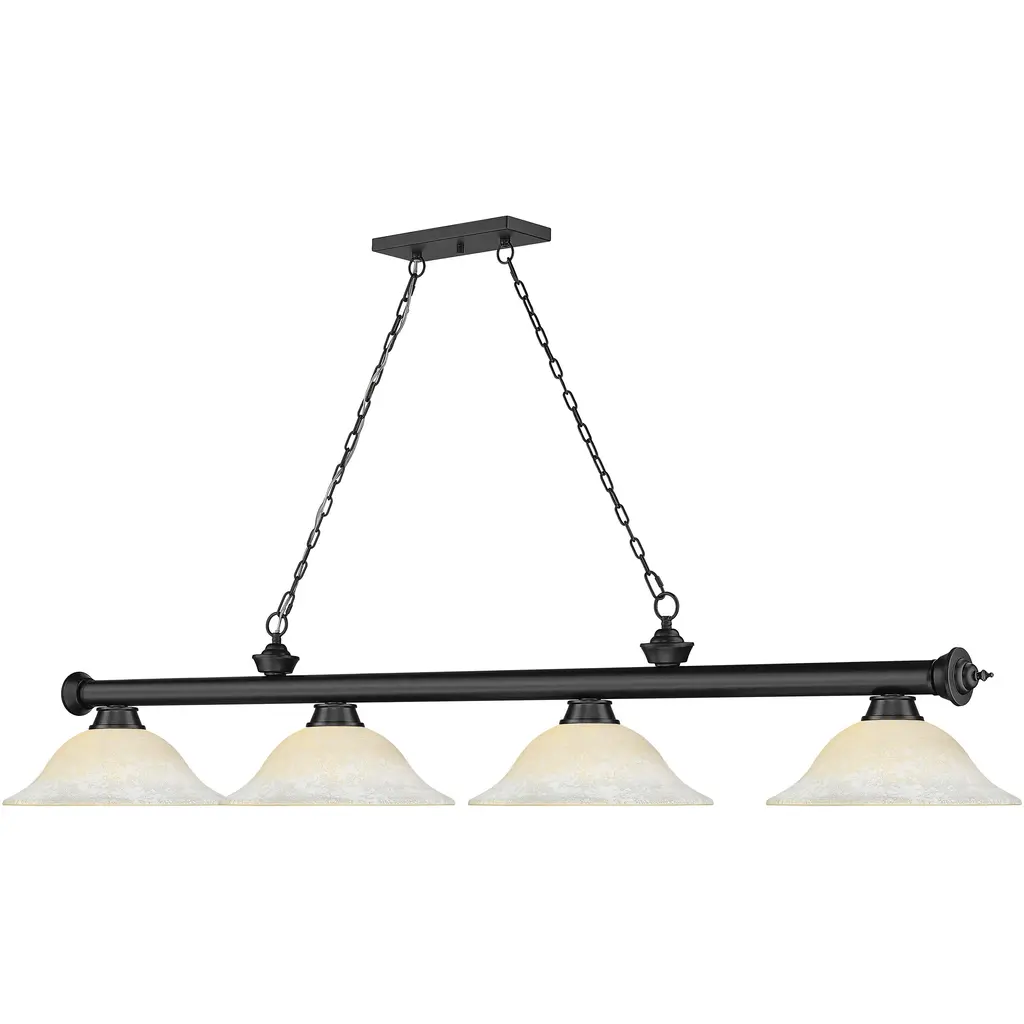 Cordon 4 Light 81.75 Inch Matte Black Billiard Ceiling Light In White Mottle Glass