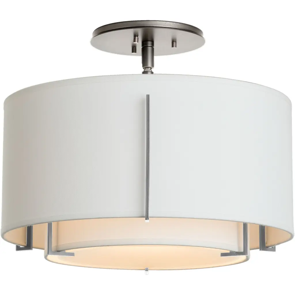 The Cordova Collection comes in Chrome with White Fabric glass. This Contemporary Cordova Semi-Flush will complement the decor in any room of your home. Made with solid steel construction to look great and last for years to come. Sleek, bold and elegant, features elongated column style candle holders that extend from a softly tapered arm.