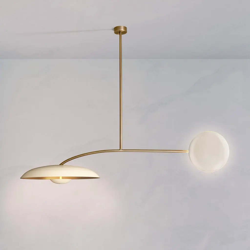 'Cosmic Orbit Solo Purion' Handmade Gloss White Lacquered Brass Ceiling Light