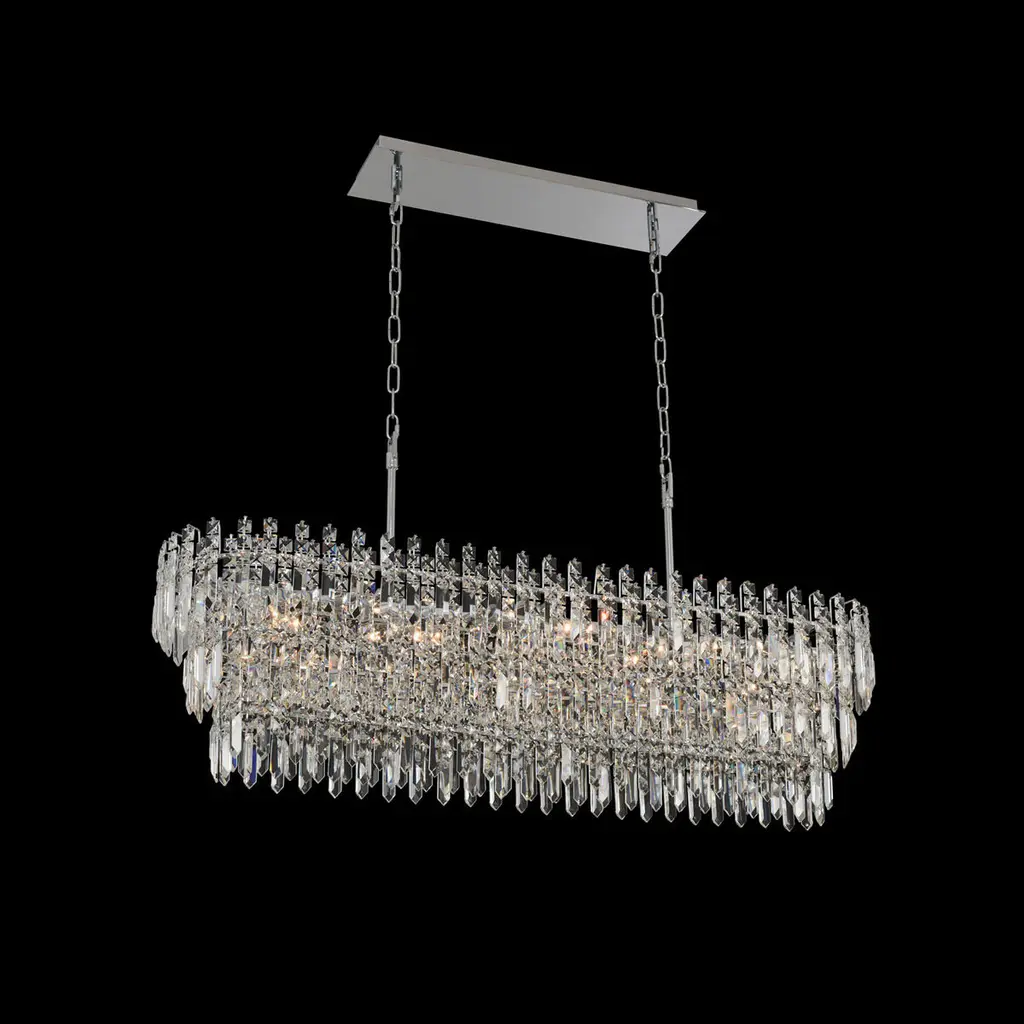 Light source:6 x E14 (US E12) halogen energy server - 6 x E14 (US E12) LED bulbs.Enclosed in mysterious geometrical structures, imagination is at last set free to express itself through a ray of sun. Cristalli by Patrizia Volpato is an exciting challenge in which these creations seek an indissoluble link between the reign of magic and our spirit. The light is split to give life to a myriad of forms which offer precious breaths of energy.Available finishes: Polished chrome, shiny 24 carat gold. Available glass colors: Transparent V1, Aquamarine V9, Red V7, Amber V6, Pink V3, Smoke V10, Bronze V11.