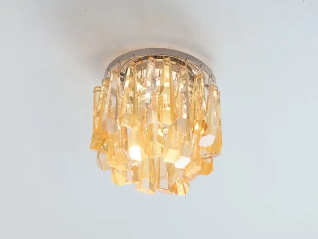 Light source: 2 x E14 (US E12) halogen energy server - 2 x E14 (US E12) LED bulbs.Enclosed in mysterious geometrical structures, imagination is at last set free to express itself through a ray of sun. Cristalli by Patrizia Volpato is an exciting challenge in which these creations seek an indissoluble link between the reign of magic and our spirit. The light is split to give life to a myriad of forms which offer precious breaths of energy.Available finishes: Polished chrome, shiny 24 carat gold. Available glass colors: Transparent V1, Aquamarine V9, Red V7, Amber V6, Pink V3, Smoke V10, Bronze V11.