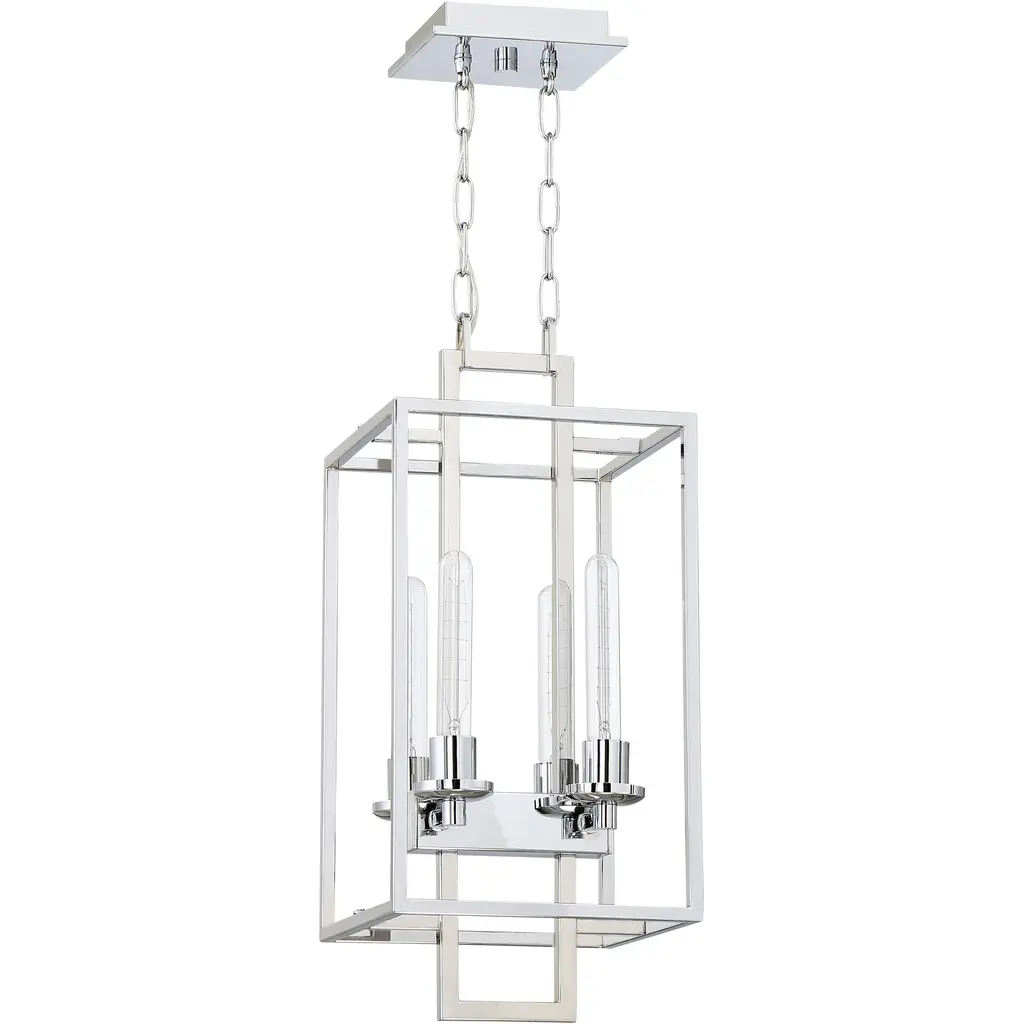 The sparse structure of the Cubic light fixture marries a rustic, lantern-style with a streamlined industrial look. The metal finish with contrasting corner accents give the Cubic openness that allows the candle-inspired bulbs to be viewed without obstruction.