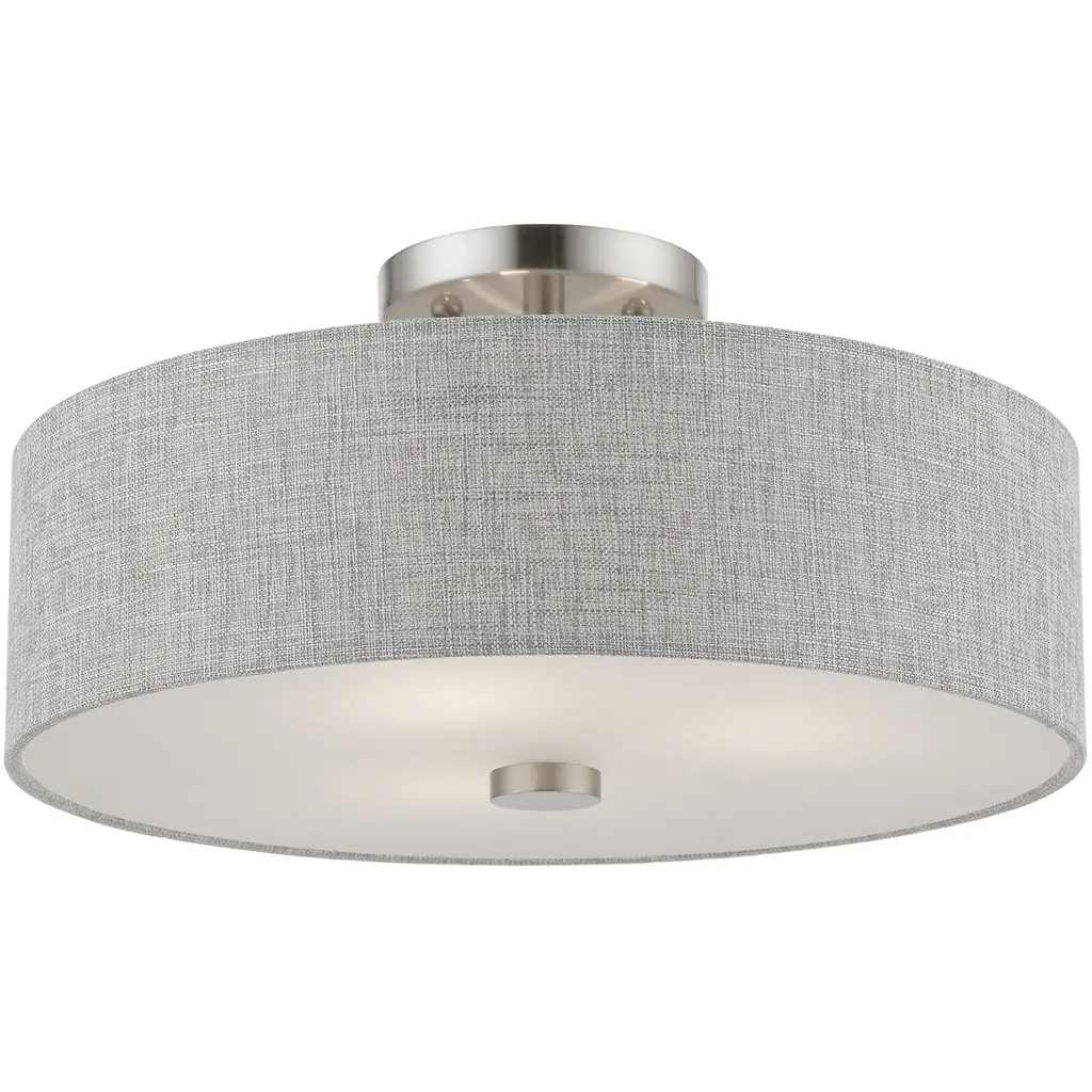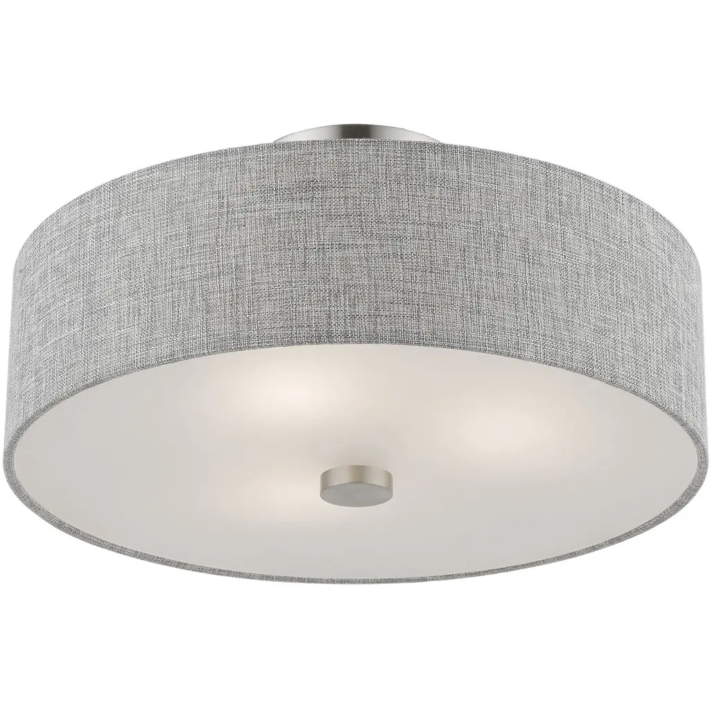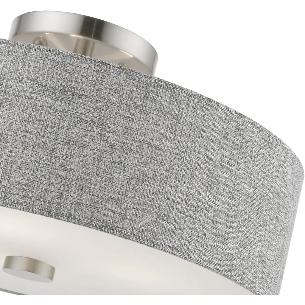 3 Light Brushed Nickel with Shiny White Accents Semi-Flush