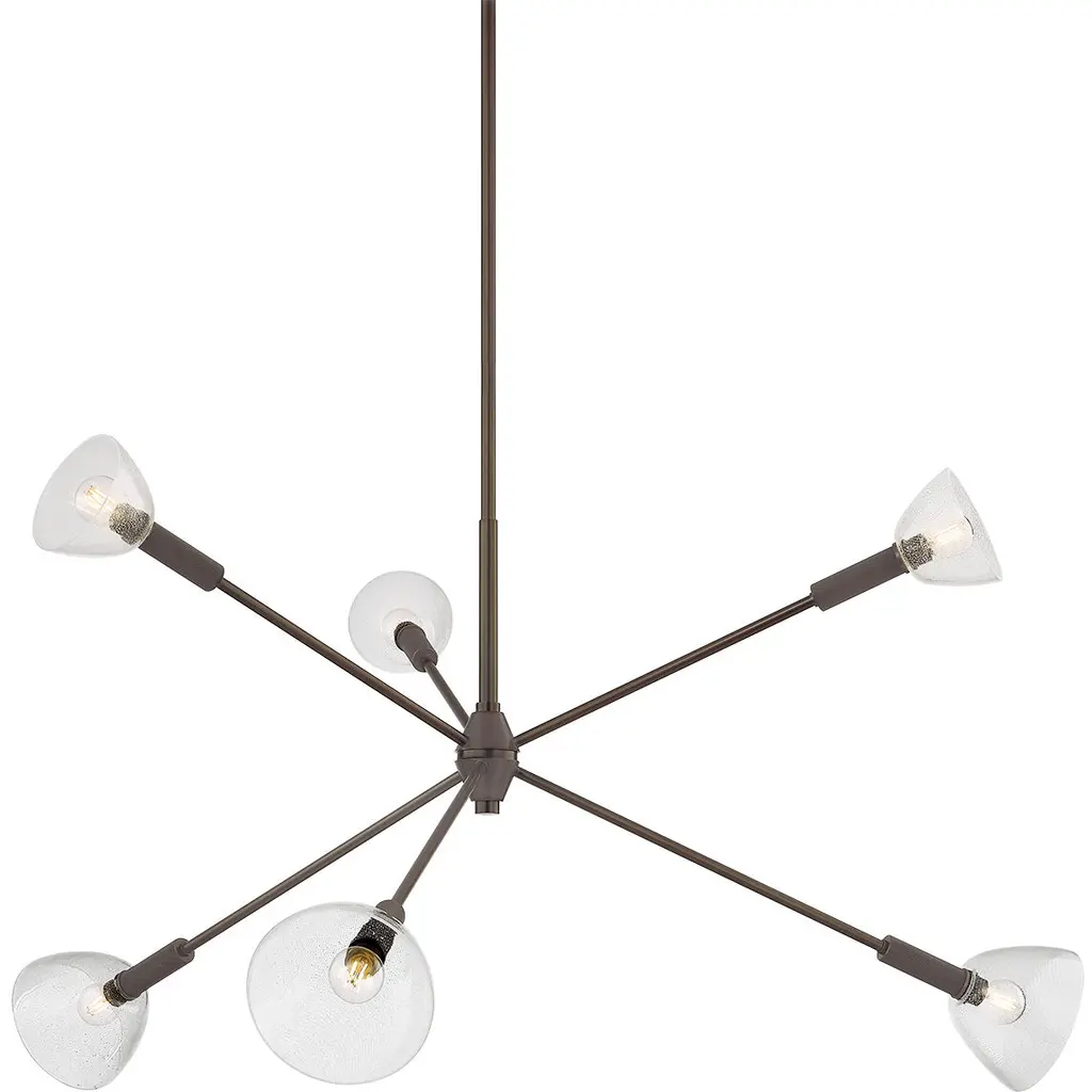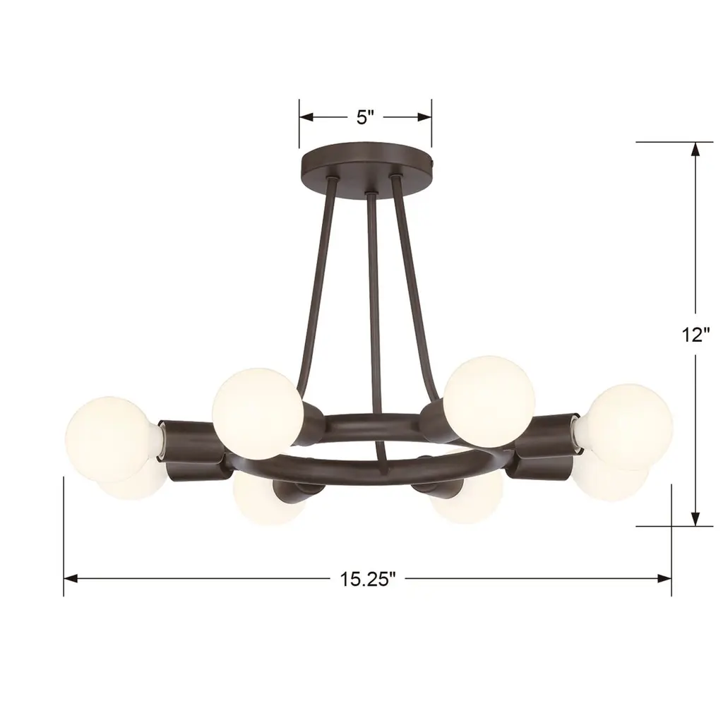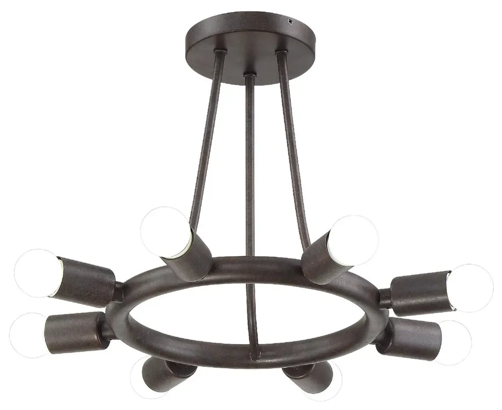 This eye-catching fixture immediately draws the eye with its geometric wrought iron frame, lined with a bevy of exposed bulbs. Hardwired.